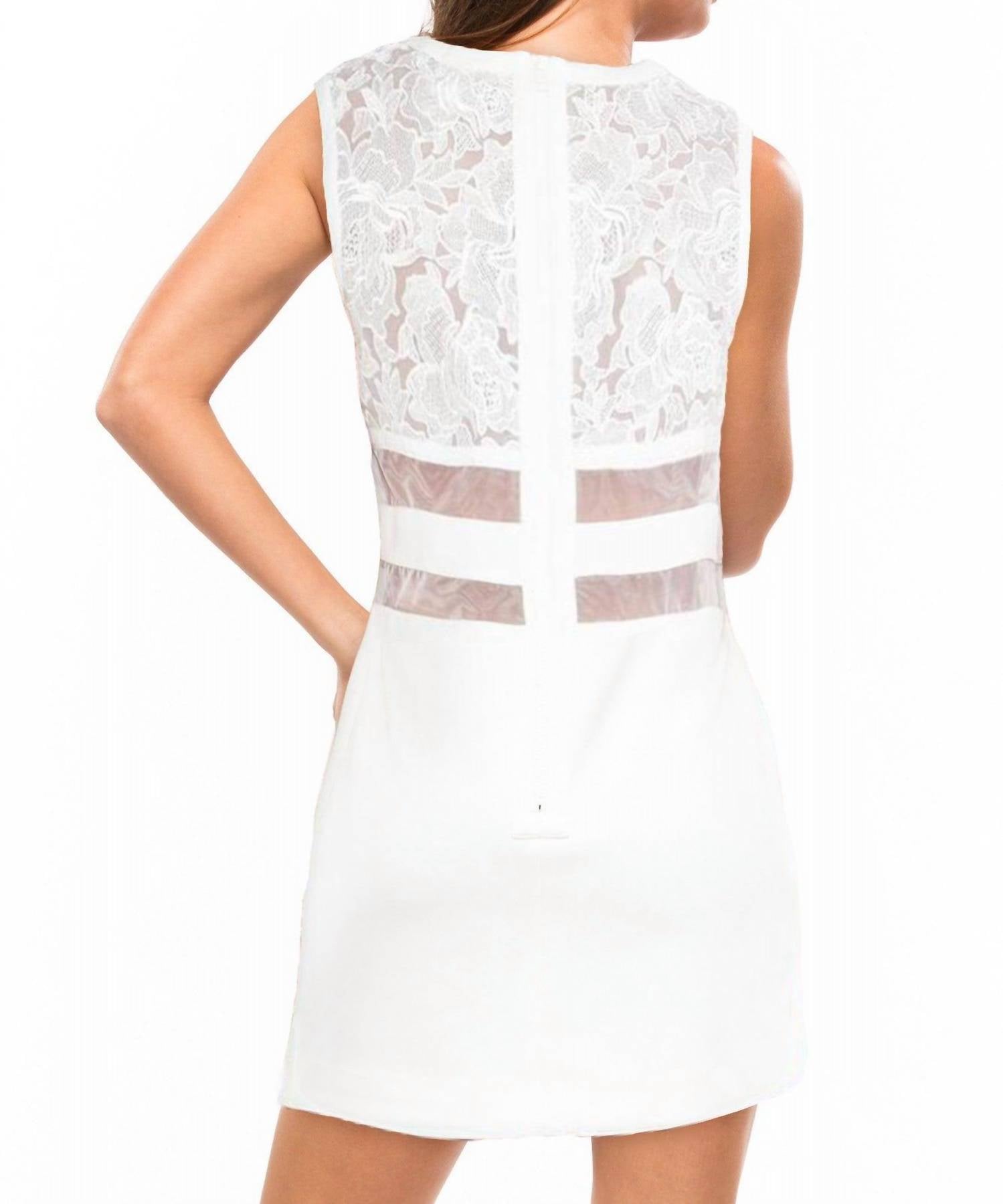 Идеальное мини-платье для теплых месяцев. Заявите о себе на следующем вечернем мероприятии в платье Little Dreams от C/MEO COLLECTIVE. Это мини-платье-футляр без рукавов из полиэстера с изысканным фактурным узором элегантного белого цвета. Два прозрачных элемента спереди и прозрачный кружевной лиф с вышивкой создают очарование в стиле 90-х. Застежка: молния по центру сзади. Идеально подходит для летних мероприятий.
