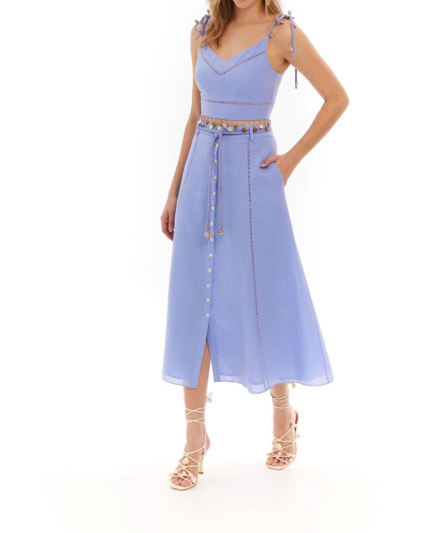 Представляем укороченный топ Dina от ALLISON NEW YORK - потрясающий вариант в цвете барвинка, который красиво подчеркивает ваши плечи. Этот женский топ выполнен из смесовой хлопковой ткани с тонкими бретельками и V-образным вырезом. Длина изделия составляет 10 дюймов (25 см), а застежка-молния обеспечивает идеальную посадку. Только химчистка.