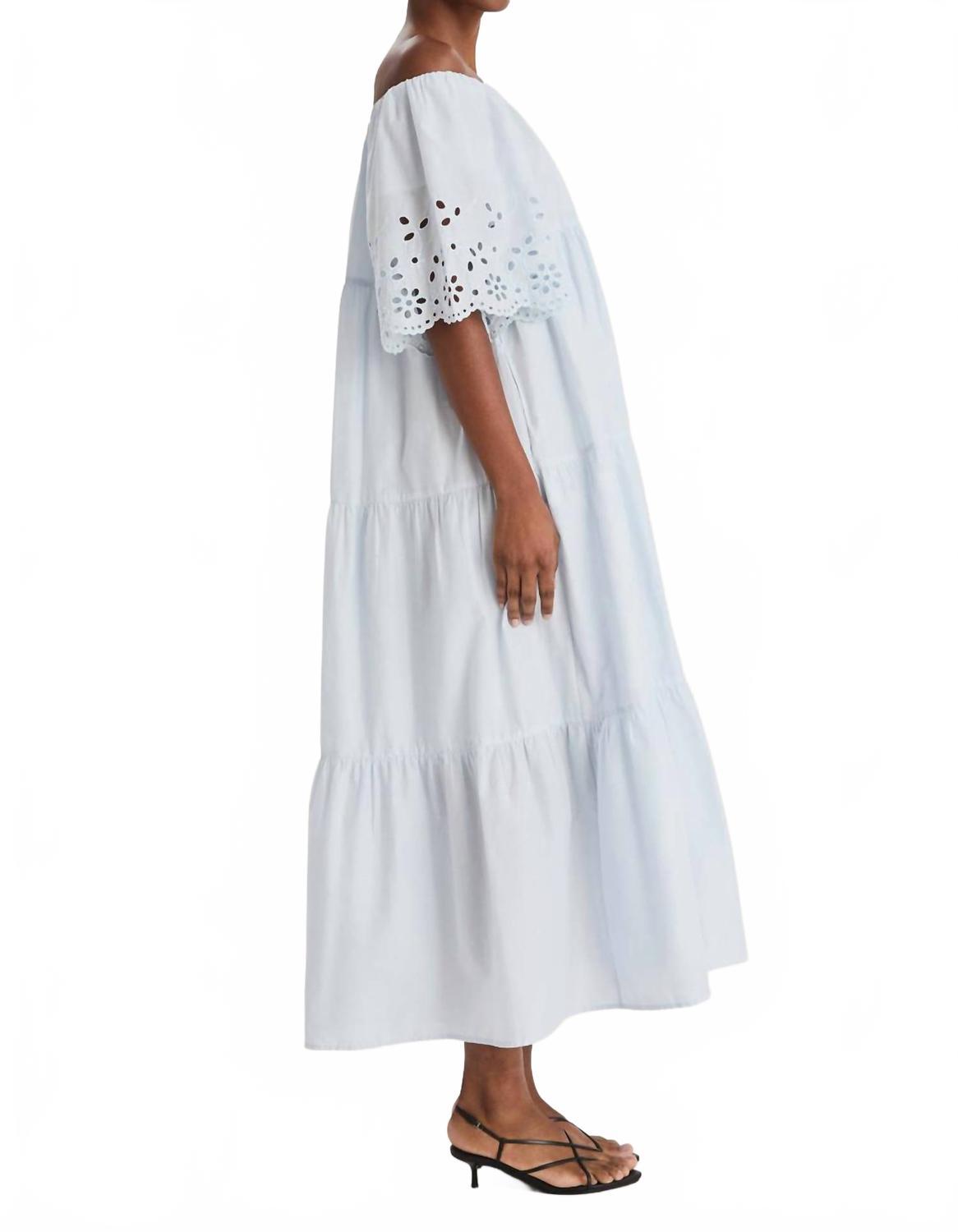 Платье идеальной длины существует. Платье миди Berenson от Merlette излучает элегантность благодаря коротким рукавам и вырезу, открывающему плечи, идеально подходящему для весенних вечерних мероприятий. Это платье А-силуэта однотонного синего цвета, выполненное из 100% пима-хлопкового батиста, с практичными карманами, создает винтажный образ. Платье удобно носить и застегивается на липучке. Стирать только вручную.