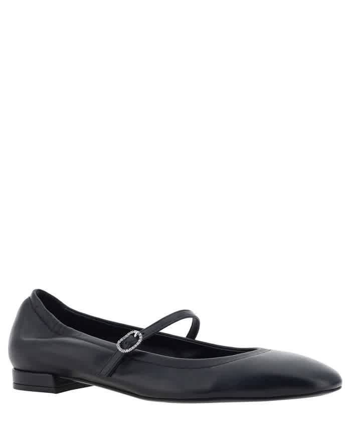 Женские балетки Stuart Weitzman. Цвет: черный. Кожаные балетки Stuart Weitzman Claris. Балетки Claris от Stuart Weitzman изготовлены из кожи и имеют круглый носок, ремешок на союзке с пряжкой, украшенной кристаллами, низкий каблук-блок и эластичную резинку на щиколотке для надежной посадки с застежкой на пряжке. 100% кожа.