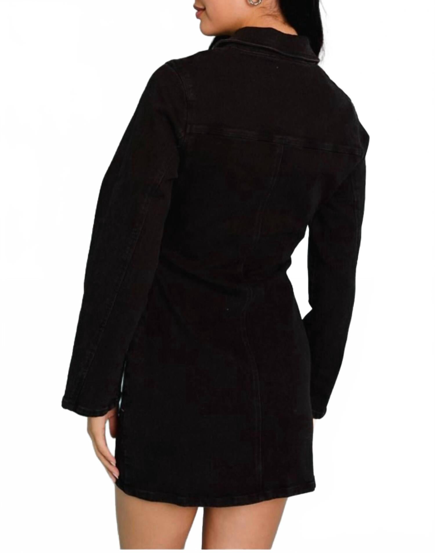 Представляем платье Renee с длинными рукавами от LELIS - стильный выбор на каждый день. Это платье из черного денима с длинными рукавами и удобной застежкой-молнией. Платье изготовлено из эластичной хлопковой смеси (80% хлопка, 18% полиэстера и 2% спандекса). Платье имеет рубашечный силуэт и практичные карманы. Машинная стирка.