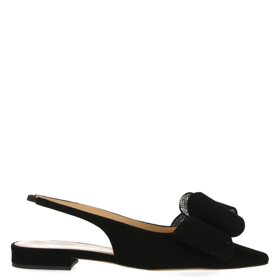 Женские босоножки Mach & Mach. Цвет: черный. Женские босоножки Mach Mach с черной ремешком на пятке и бантом. Эти босоножки с острым носком и ремешком на пятке дополнены фирменной кожаной стелькой для комфорта. Низкий блочный каблук и кожаная подошва украшены бантом для стильного эффекта. Сделано в Италии.