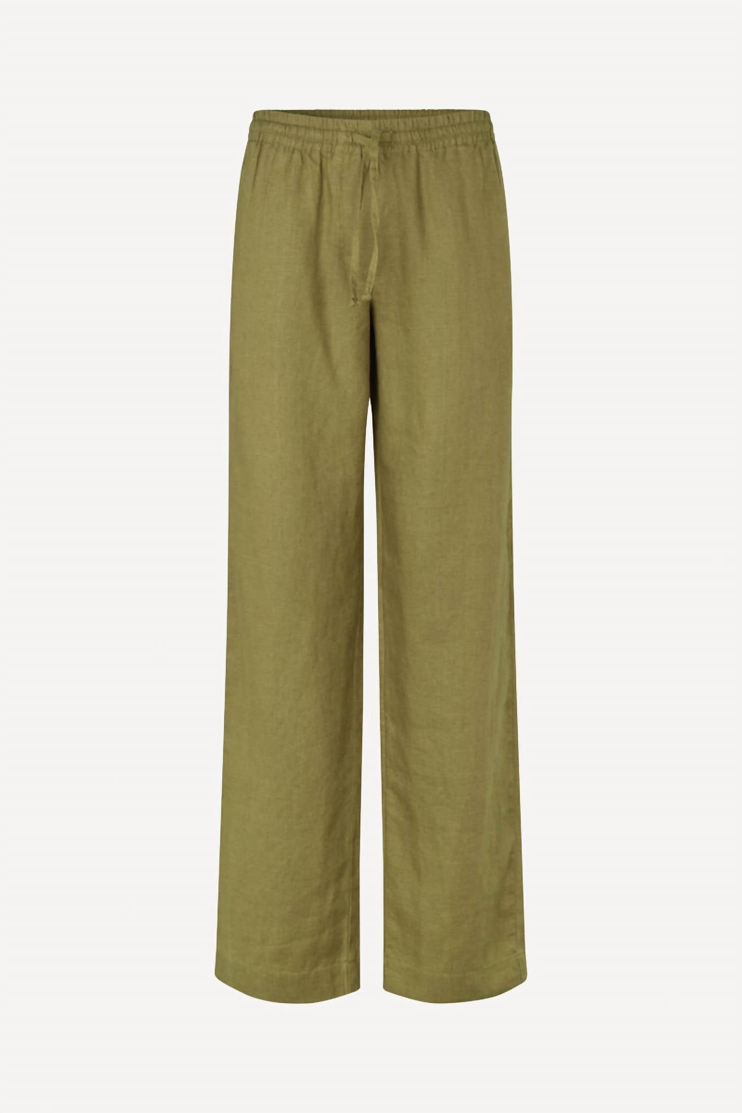 Представляем брюки Hoys String от SAMSOE - стильное дополнение к любому гардеробу в потрясающем оливковом оттенке. Эти брюки из 100% льна отличаются свободной посадкой, высокой посадкой и широкими штанинами. Завязка добавляет им уникальный штрих, а однотонный крой делает их универсальными для различных случаев. Эти брюки идеально подходят для весеннего уличного стиля и концертных выступлений, а удобные карманы.