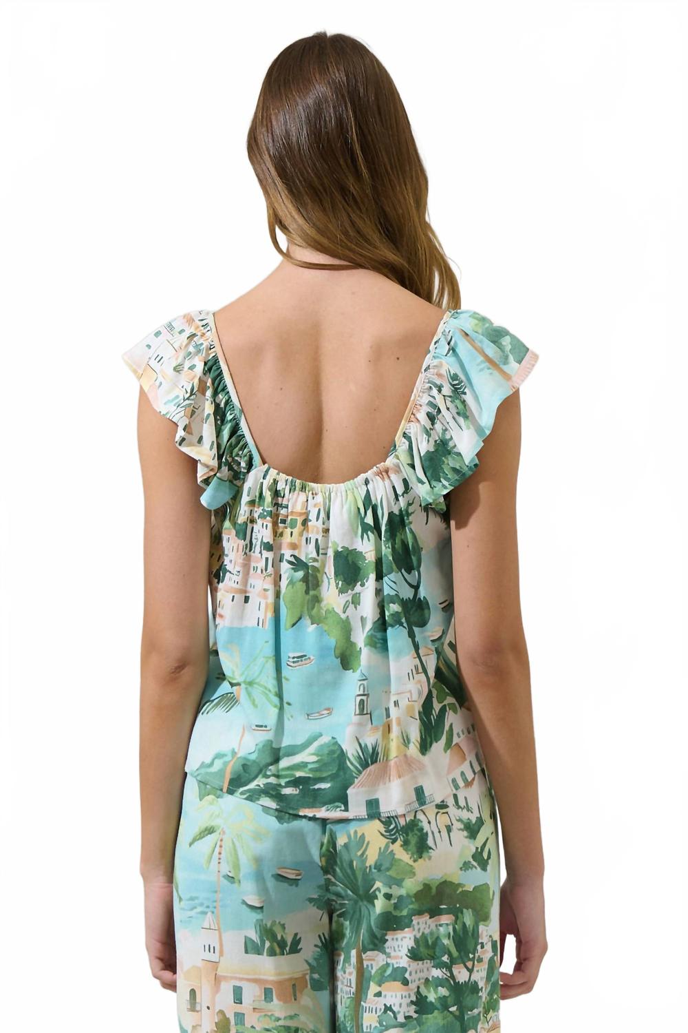 Сочетайте его с любимыми джинсами и шлепанцами для следующей девичьей вечеринки. Представляем топ Isla Breeze Ruffle Top от SUGARLIPS - игривое и стильное дополнение к вашему летнему гардеробу. Благодаря коротким рукавам и графическому узору в разноцветной гамме этот топ создаст свежий и легкий образ, идеально подходящий для пляжных дней. Застежка: надевайте. Уход: машинная стирка, сушить в стиральной машине.