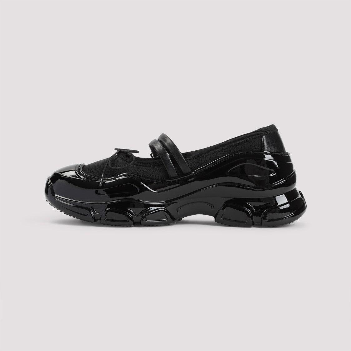 Современная элегантность кроссовок Simone Rocha сияет в элегантном черном дизайне с глянцевой отделкой. Массивная подошва и стильный ремешок с пряжкой обеспечивают комфорт и добавляют эстетики, идеально подходящих для повседневных прогулок.