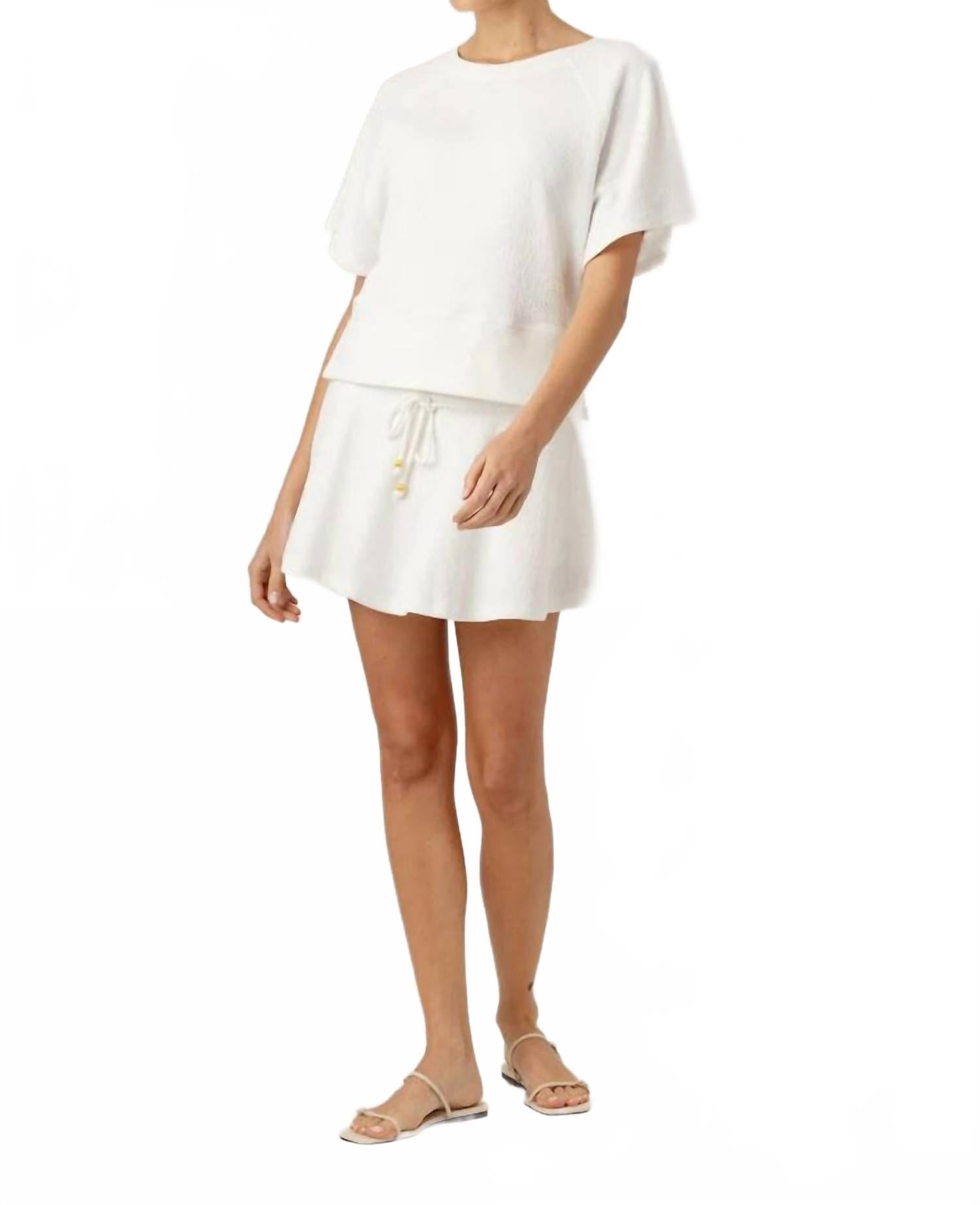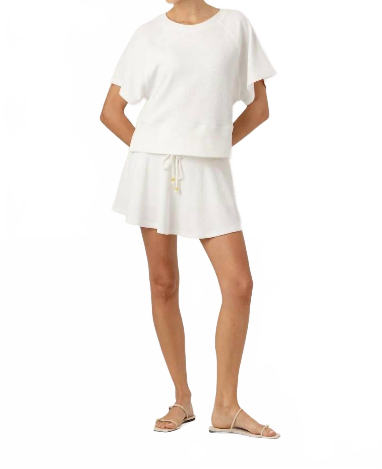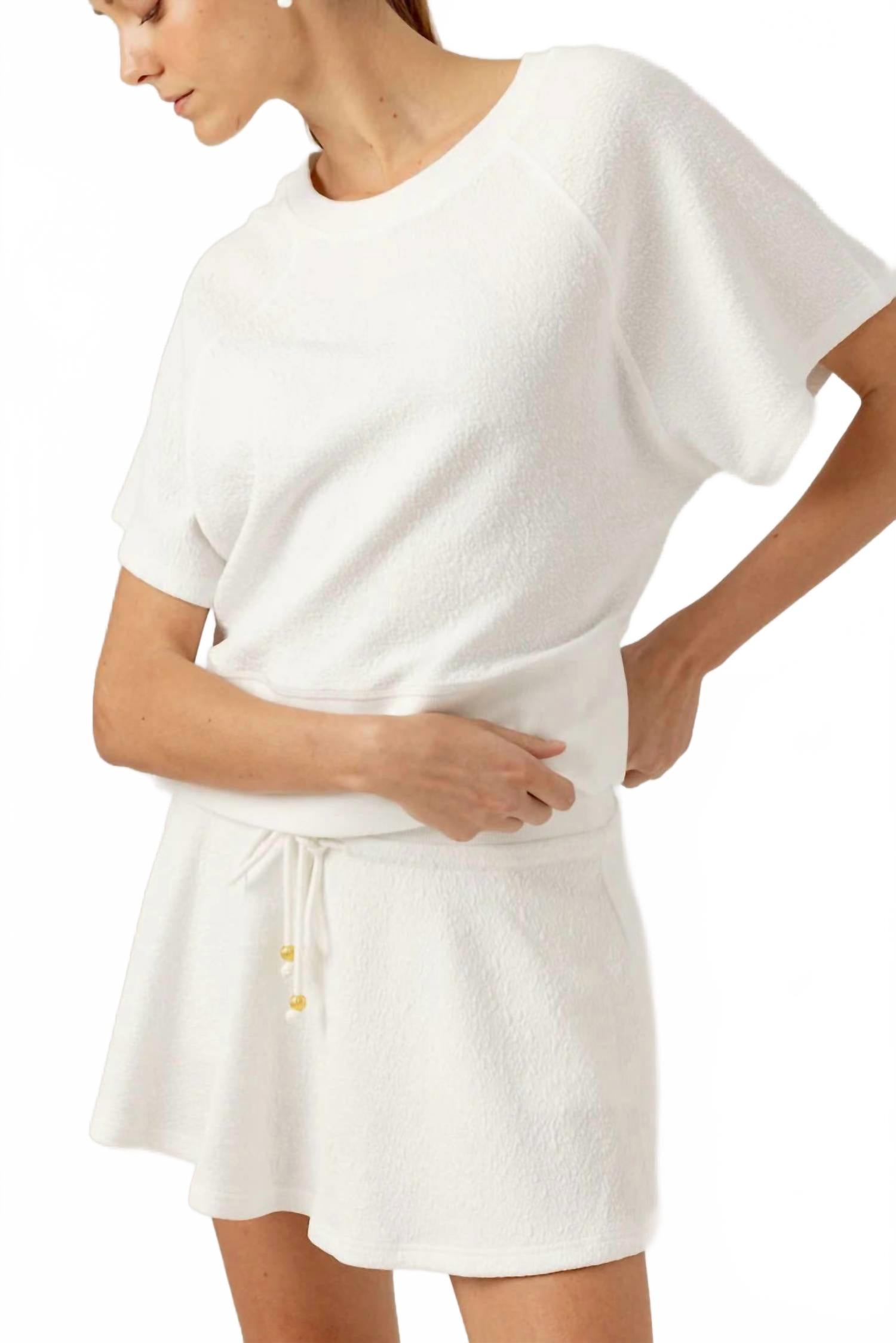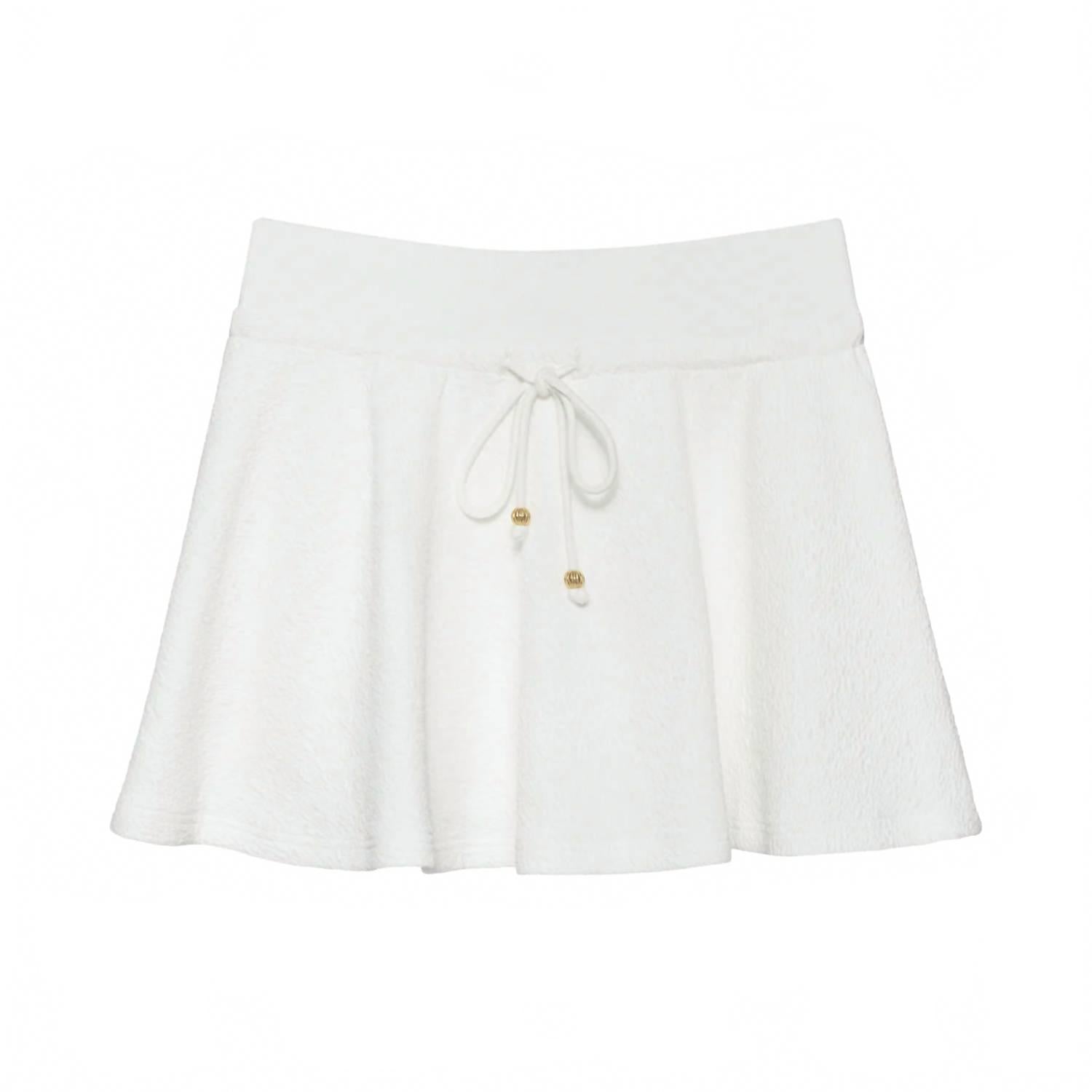 Юбка, в которой можно сделать все, что угодно? Мы обожаем хорошие юбки-шорты, особенно эту! Представляем юбку Cherie от Sundays - шикарную юбку-шорты цвета «кокосовое молоко» из фактурной жатой ткани. Эта однотонная теннисная юбка-шорты выполнена в спортивном стиле со вшитыми шортами и поясом в рубчик с регулируемой завязкой для идеальной посадки. Состав: полиэстер. Уход: машинная стирка, сушить на веревке.
