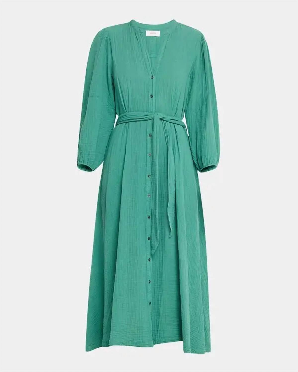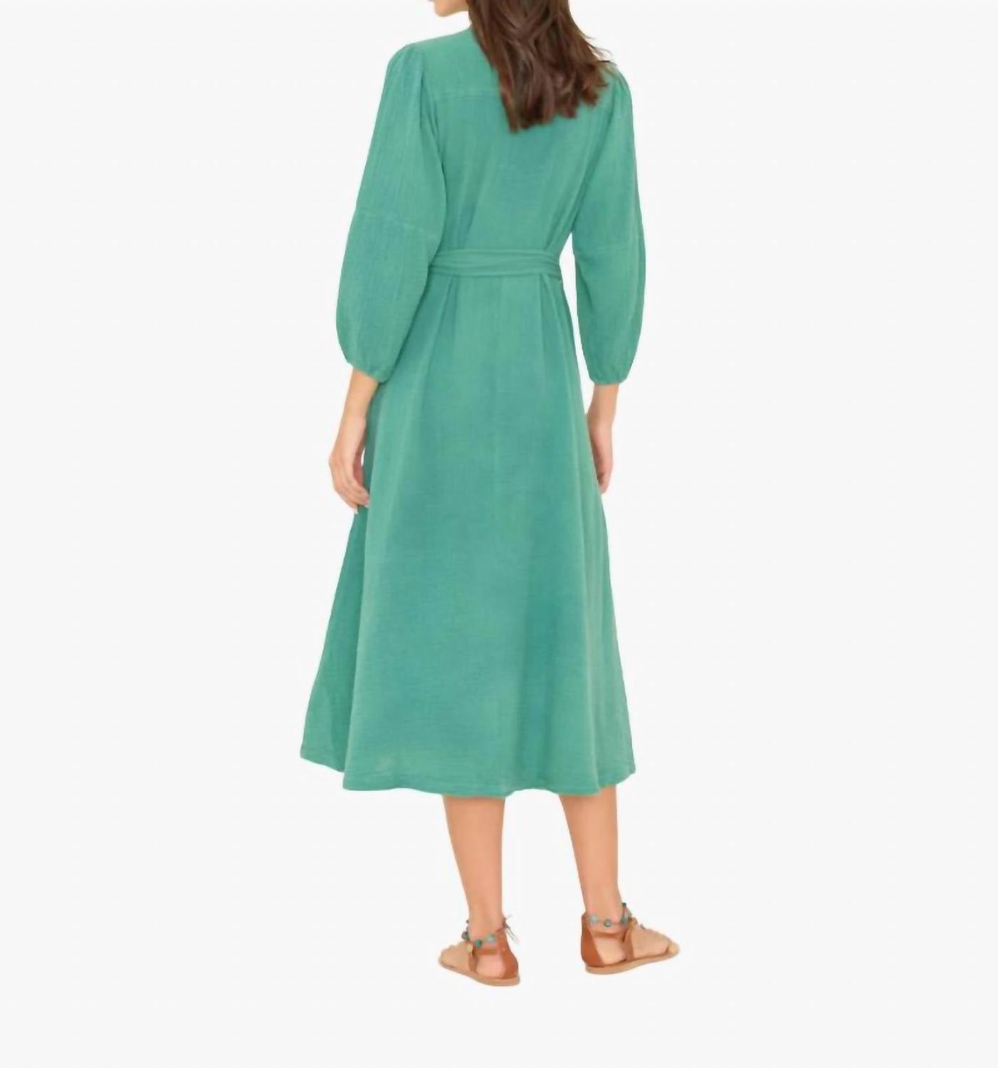 Это платье с длинными рукавами-блузонами и длиной миди около 122 см выполнено из жатой двусторонней хлопковой марли. Платье, произведенное в США, застегивается на пуговицы, имеет привлекательный А-образный силуэт, пояс на завязке и практичные карманы в боковых швах. Для легкого ухода достаточно машинной стирки в холодной воде.