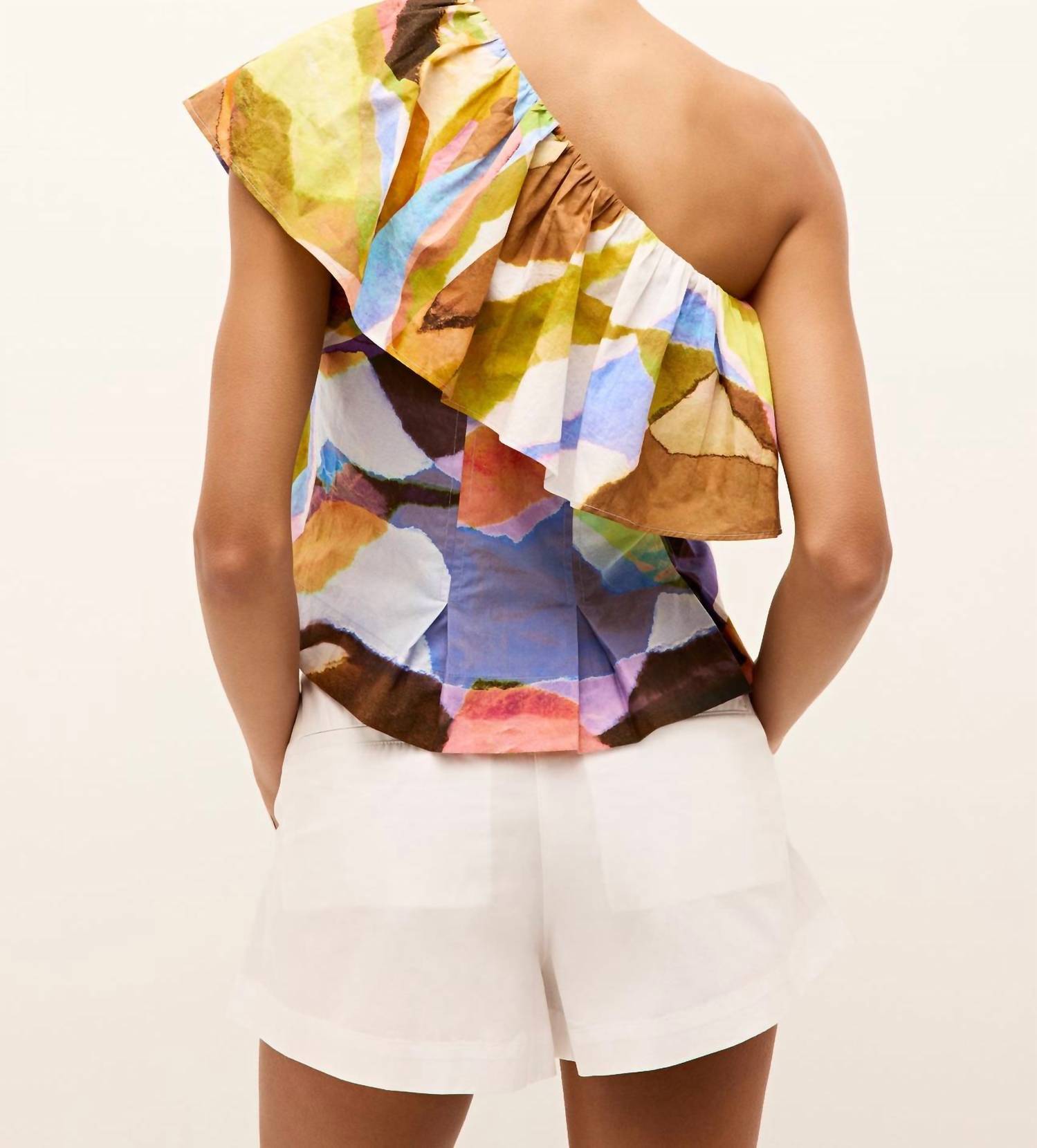 Этот топ на одно плечо, созданный для того, чтобы произвести впечатление, отличается широкой оборкой и плиссировкой, которая создает облегающий силуэт с расклешенными краями. Топ сшит из 100% хлопка, который обеспечивает воздухопроницаемость и комфорт, а также дополнен юбками в тон или простыми элементами гардероба.