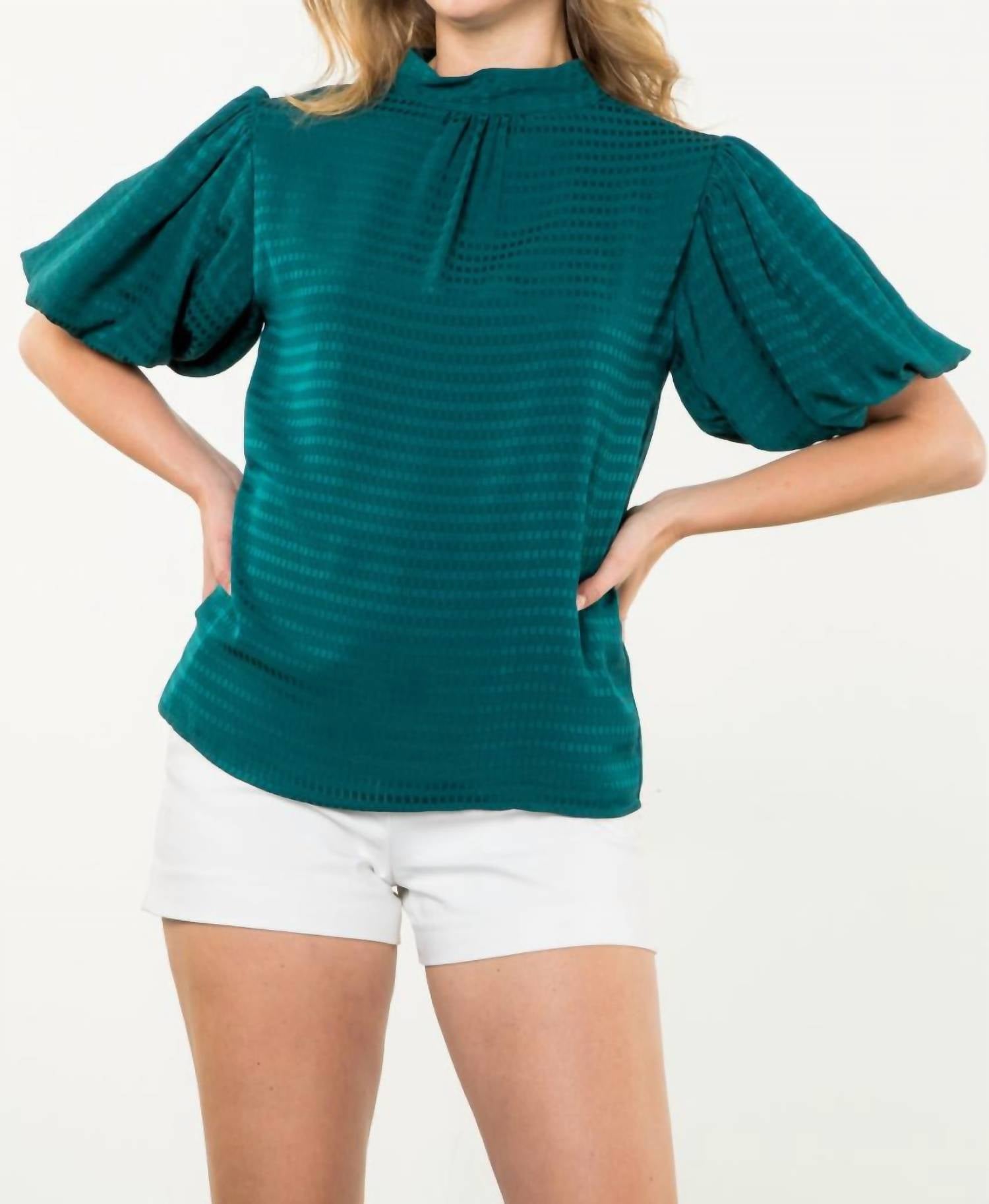 Откройте для себя блузку Chlo с короткими рукавами от THML - фактурную модель в прохладном темно-зеленом цвете, идеально подходящую для праздничных встреч. Эта блузка с короткими рукавами-фонариками и универсальной завязкой на шее, которую можно завязывать спереди или сзади. 100% полиэстер. Рекомендуется ручная стирка.