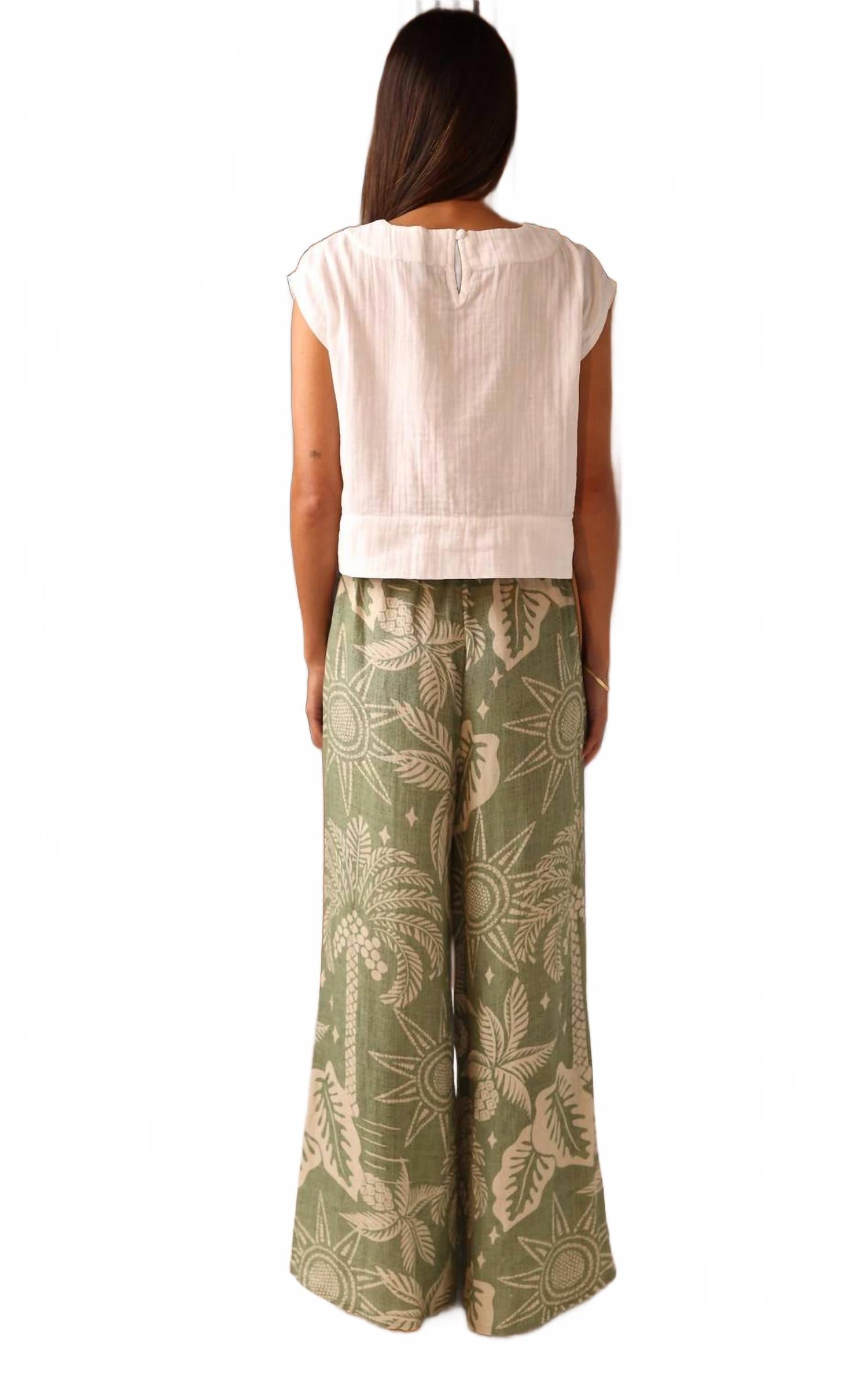 Зеленые льняные пляжные брюки SHORE