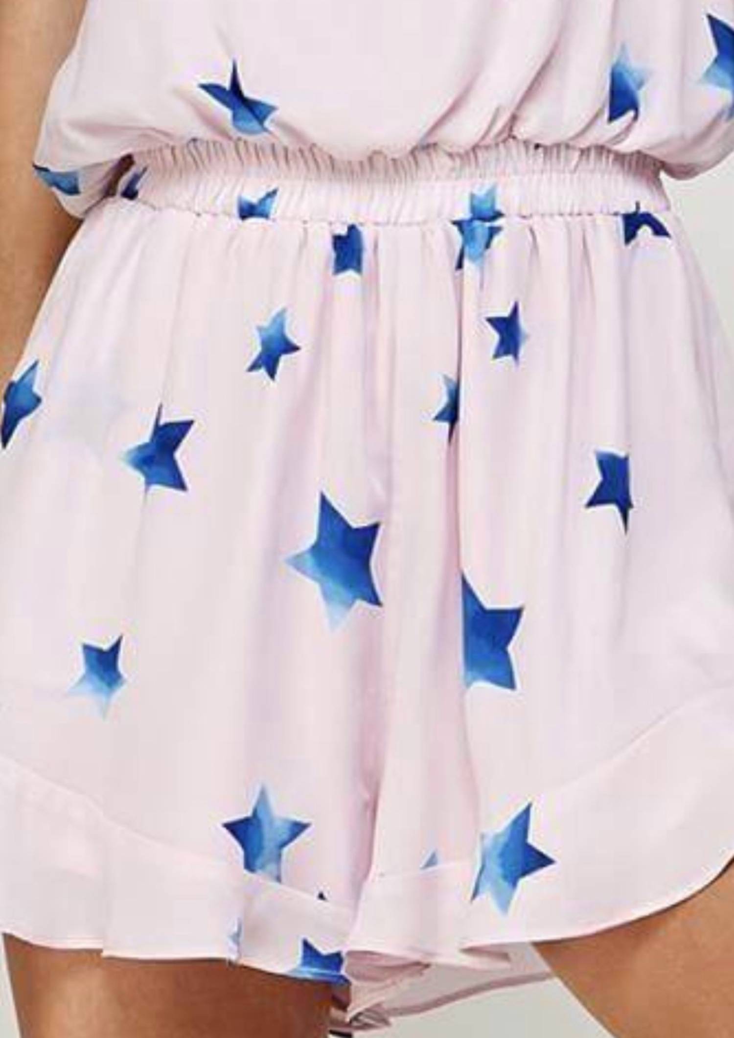 Представляем комбинезон со звездным принтом от CARAMELA - очаровательное дополнение к вашему летнему гардеробу. Этот комбинезон свободного кроя с оборкой по низу и застежкой на пуговицы-капельки сзади. Изготовлен из 100% полиэстера и представлен в очаровательном розово-голубом принте со звездами.