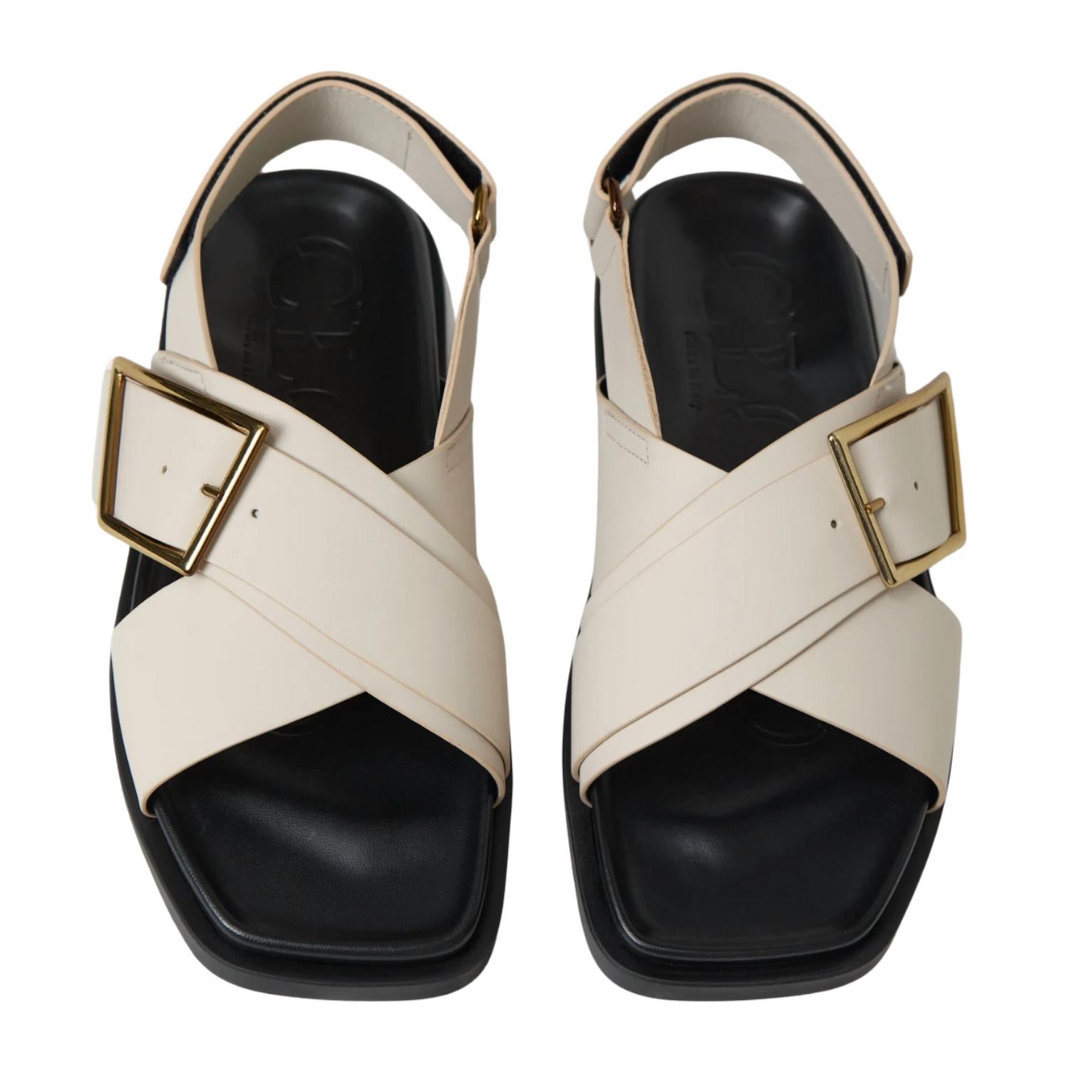 Классические, милые и удобные на каждый день. Нам очень нравятся эти сандалии. Закрытые кожаные сандалии. Итальянская воловья кожа светло-серого цвета. Перекрещивающиеся кожаные ремешки. Асимметричная золотистая пряжка. Ремешок на пятке с застежкой-липучкой. Стелька с тисненым логотипом. Подошва с высоким протектором. Мягкая кожаная подкладка. Размер 38 = US 8. Соответствует размеру. Сделано в Италии.