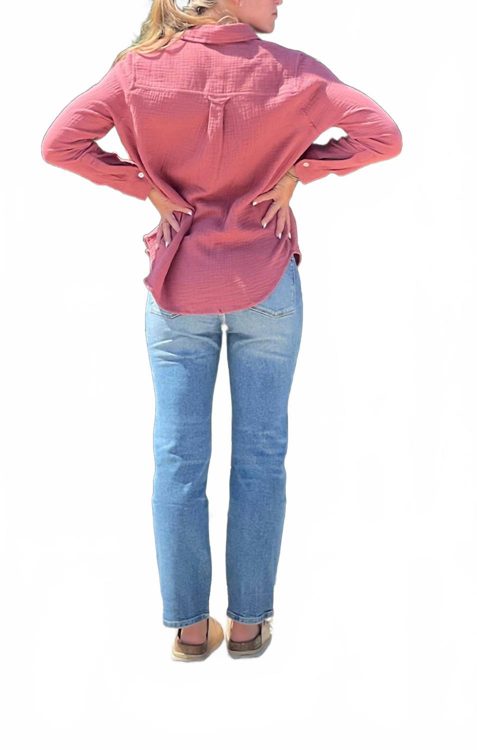 Идеально сшитая и мягкая на ощупь. Встречайте топ Carolina от Mint - легкое и удобное дополнение к вашему гардеробу. Эта женская рубашка на пуговицах с длинными рукавами и классическим воротником идеально подходит для любого сезона. Текстурированный цвет глины придаст элегантности вашему повседневному образу. Оцените практичность карманов и застежку на пуговицы для дополнительной функциональности.