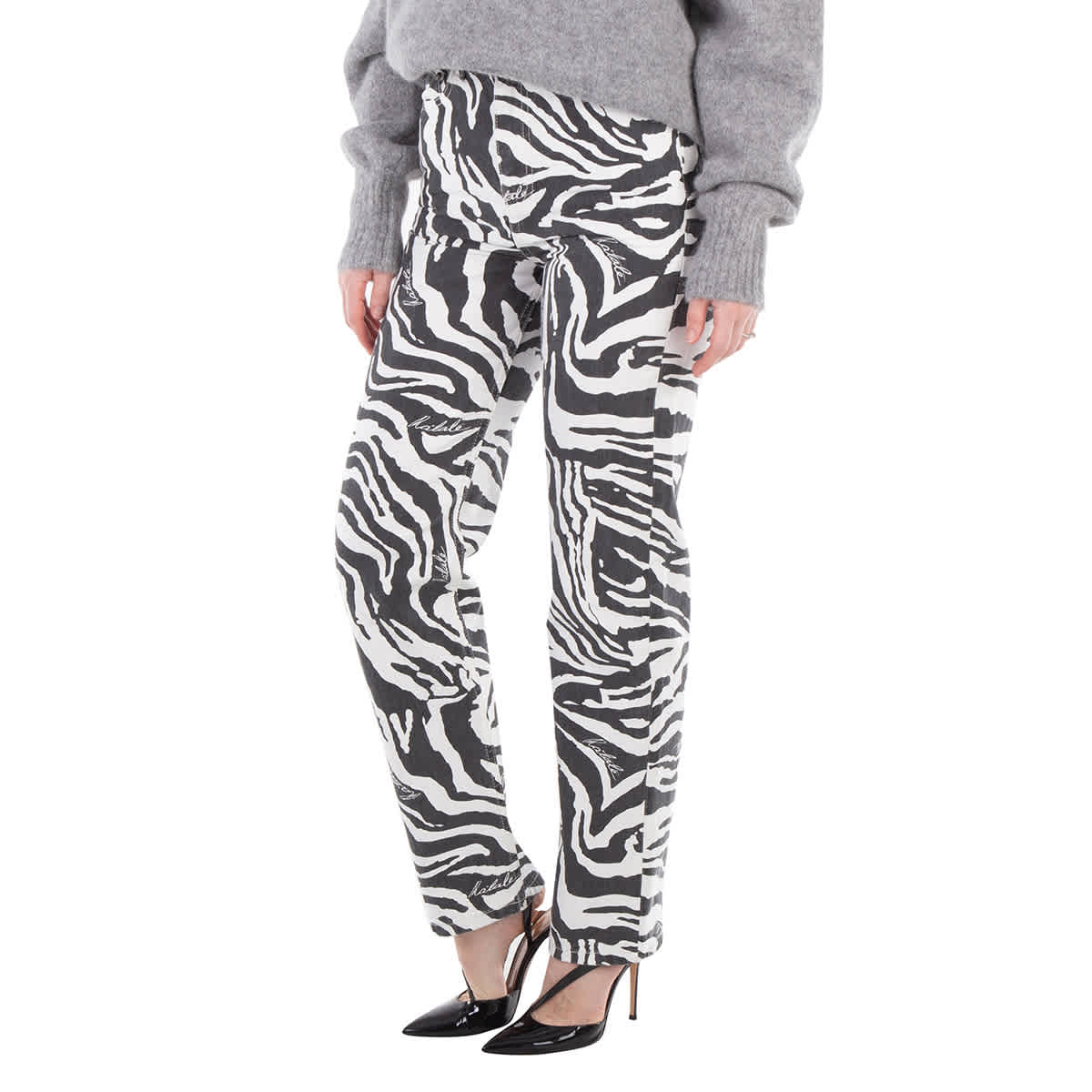Бренд: Rotate. Категория: Джинсы и деним. Цвет: зебра/ярко-белый. Женские джинсы Rotate с принтом «Зебра» и «ярко-белый». Эти брюки из органического хлопка имеют классический прямой крой и высокую талию для удобной посадки. Нашивка с логотипом сзади и яркий принт «зебра» по всей длине добавляют модели яркий и уникальный штрих. 100% хлопок (органический).