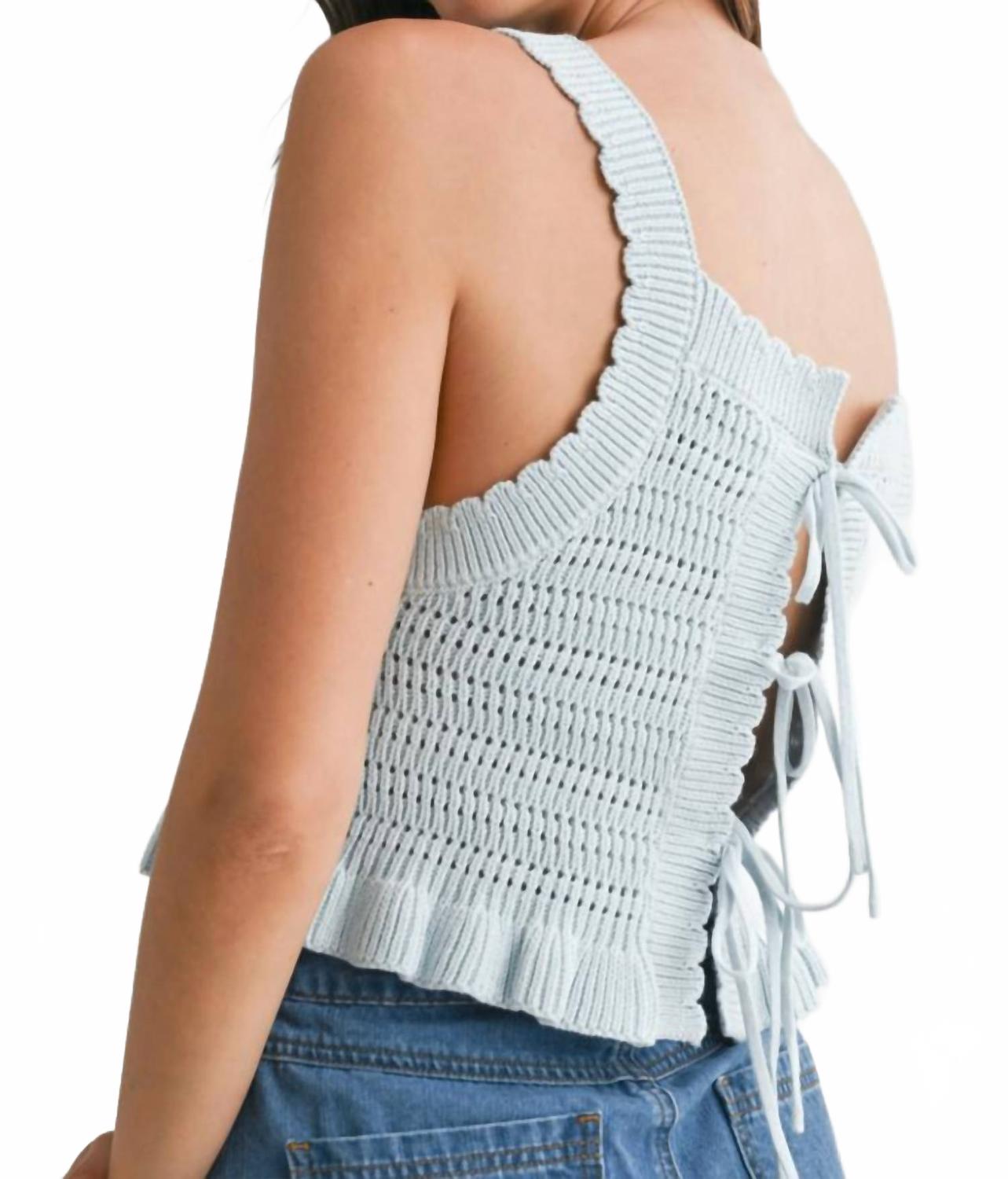 Идеальный укороченный топ для теплых дней. Погрузитесь в летнее настроение с этим вязаным крючком топом с оборкой по подолу от MIOU MUSE - эффектным минималистичным изделием насыщенного синего оттенка. Этот укороченный топ без рукавов с текстурированным кроем идеально подходит для отпуска. Материал: вискоза. Застежка: завязка. Вырез: квадратный. Идеально дополнит ваш гардероб для теплой погоды.