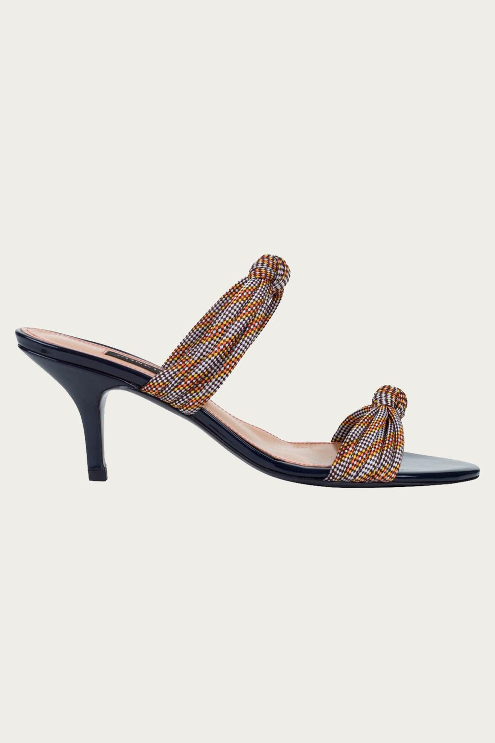 Туфли «Адам» от Stine Goya с открытым носком и пяткой. Два шнурка, собранные в узел, придают каблуку идеальный штрих. Блестящая темно-синяя основа прекрасно сочетается с очень темным денимом, например, с узкими туфлями High Rise Ankle Zip. Каблук 76 мм (3 дюйма). Материал: козья кожа, тунит. Европейский размер. На Мариссе 38-й размер (EU).