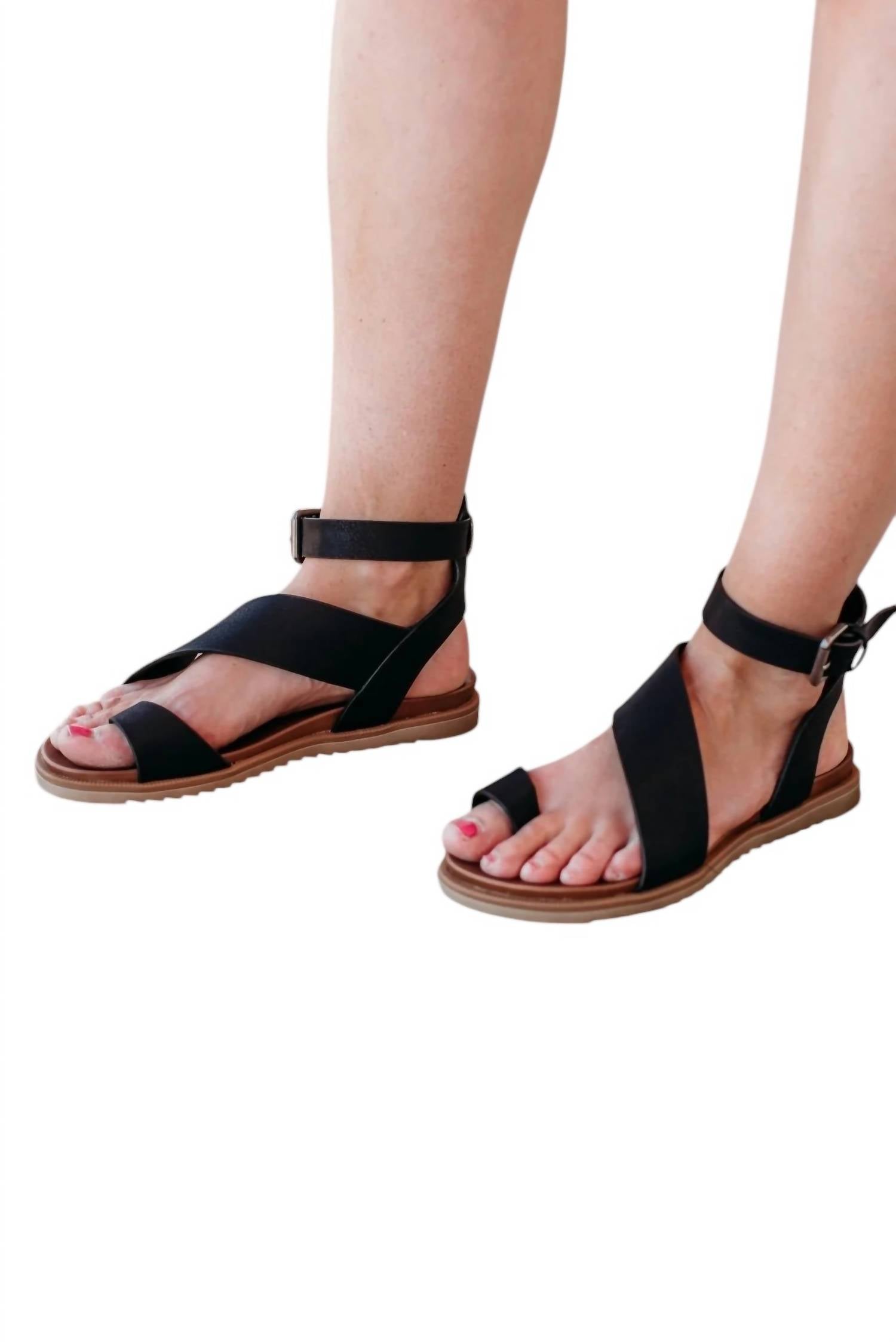 Эти сандалии на плоской подошве с ремешком и вставкой на носке обеспечивают стильную и комфортную посадку на весь день. Ремешок на щиколотке с пряжкой гарантирует комфорт при каждом шаге. Благодаря прочной подошве, идеально подходящей для ходьбы, эти сандалии станут вашим идеальным спутником и днем, и вечером.