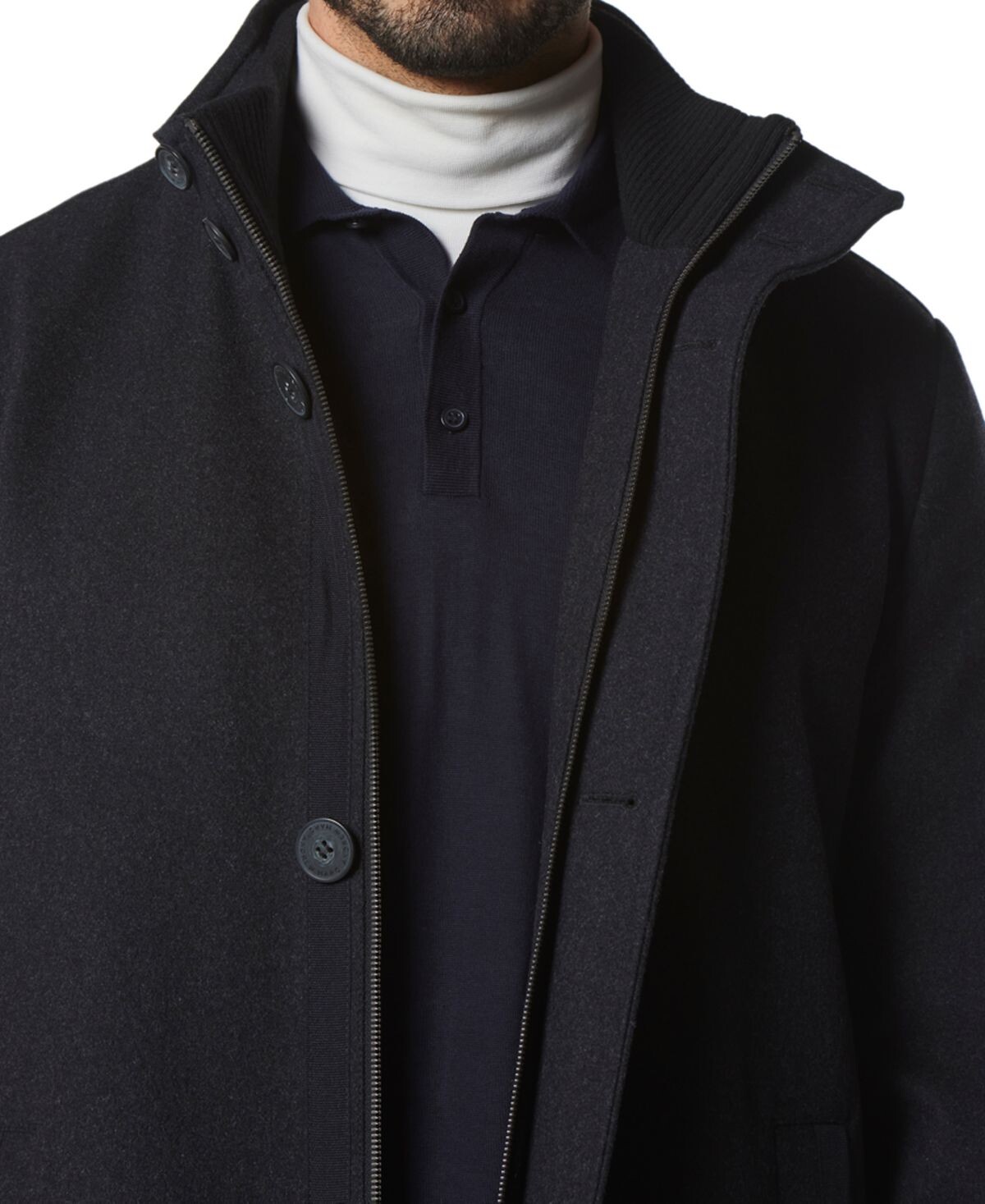 Фирменное автомобильное пальто Marc New York Dorsey выполнено из классической ткани мелтон и украшено трикотажной отделкой в ​​рубчик на внутреннем воротнике, создающей ощущение уюта. Этот стиль «надевай и ходи» также включает воротник-стойку, переднюю планку на пуговицах и детали из тесьмы вдоль прорезных карманов.