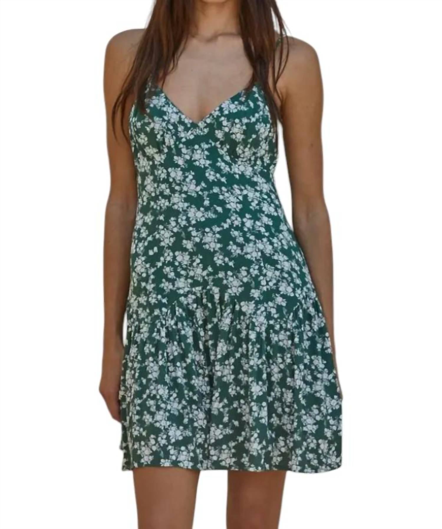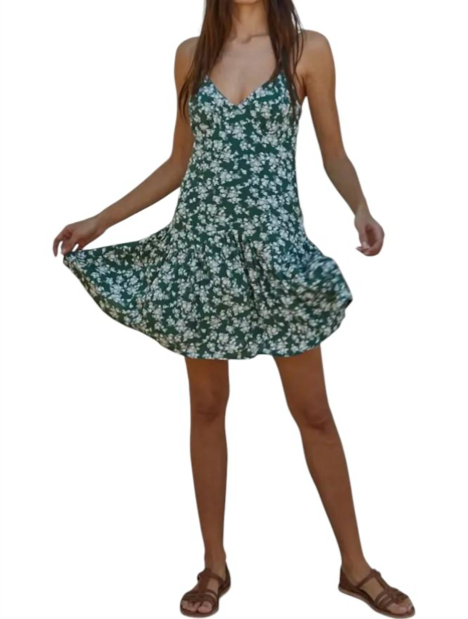 Очаровательный и яркий оттенок охотничьего зеленого цвета. Приталенный и расклешенный силуэт. Изящные тонкие бретельки и V-образный вырез, подчеркивающий достоинства фигуры. Простота застежки обеспечивает удобство при ношении. Рекомендации по уходу: ручная стирка для сохранения цветочного узора.