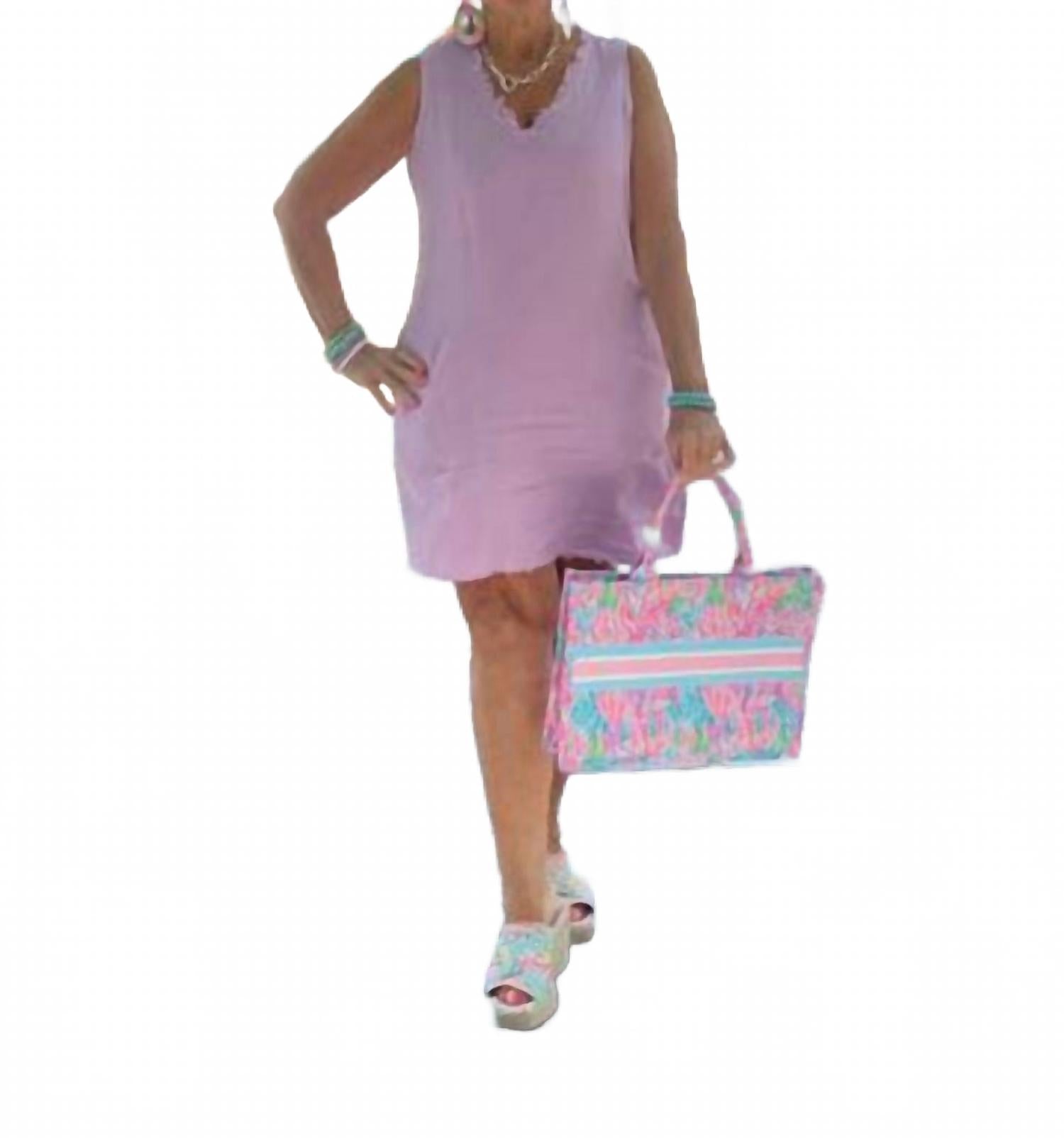Это льняное платье без рукавов свободного кроя дополнено мягким оборчатым вырезом, придающим ему очарование. Потертые детали добавляют изделию легкую текстуру, а два накладных кармана на бедрах сочетают стиль и функциональность. Прямой подол делает это платье легким и дышащим, идеально подходящим для теплой погоды. Изготовлено из 100% льна.