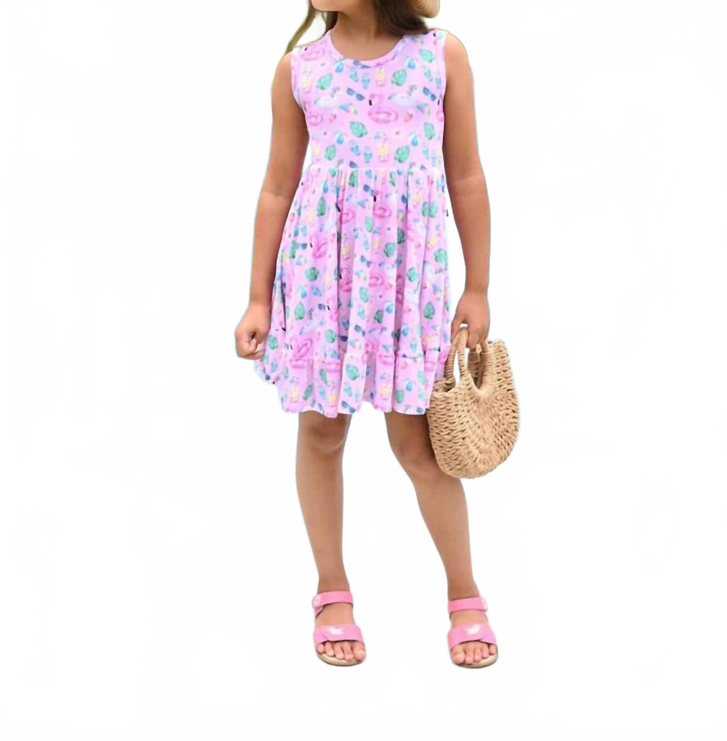 Платье Lev Baby Josie Twirl, украшенное очаровательными единорогами и надувными кругами с фламинго, выполнено из невероятно мягкой и эластичной вискозы с добавлением 5% спандекса для комфорта и свободы движений. Это розовое платье с узором, украшенное очаровательными оборками спереди и сзади, идеально подходит для пляжа или неформальных прогулок. Уход: можно стирать в стиральной машине.