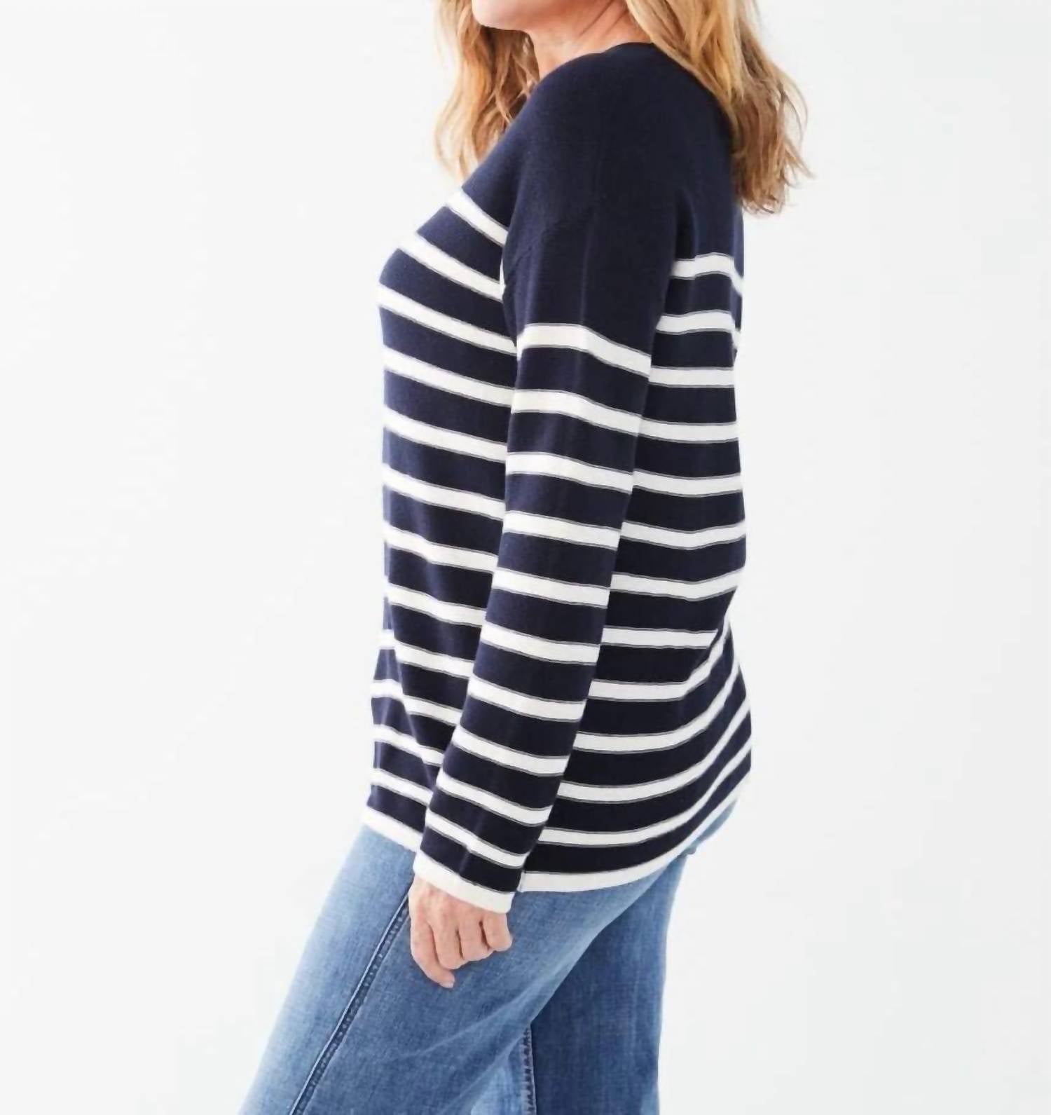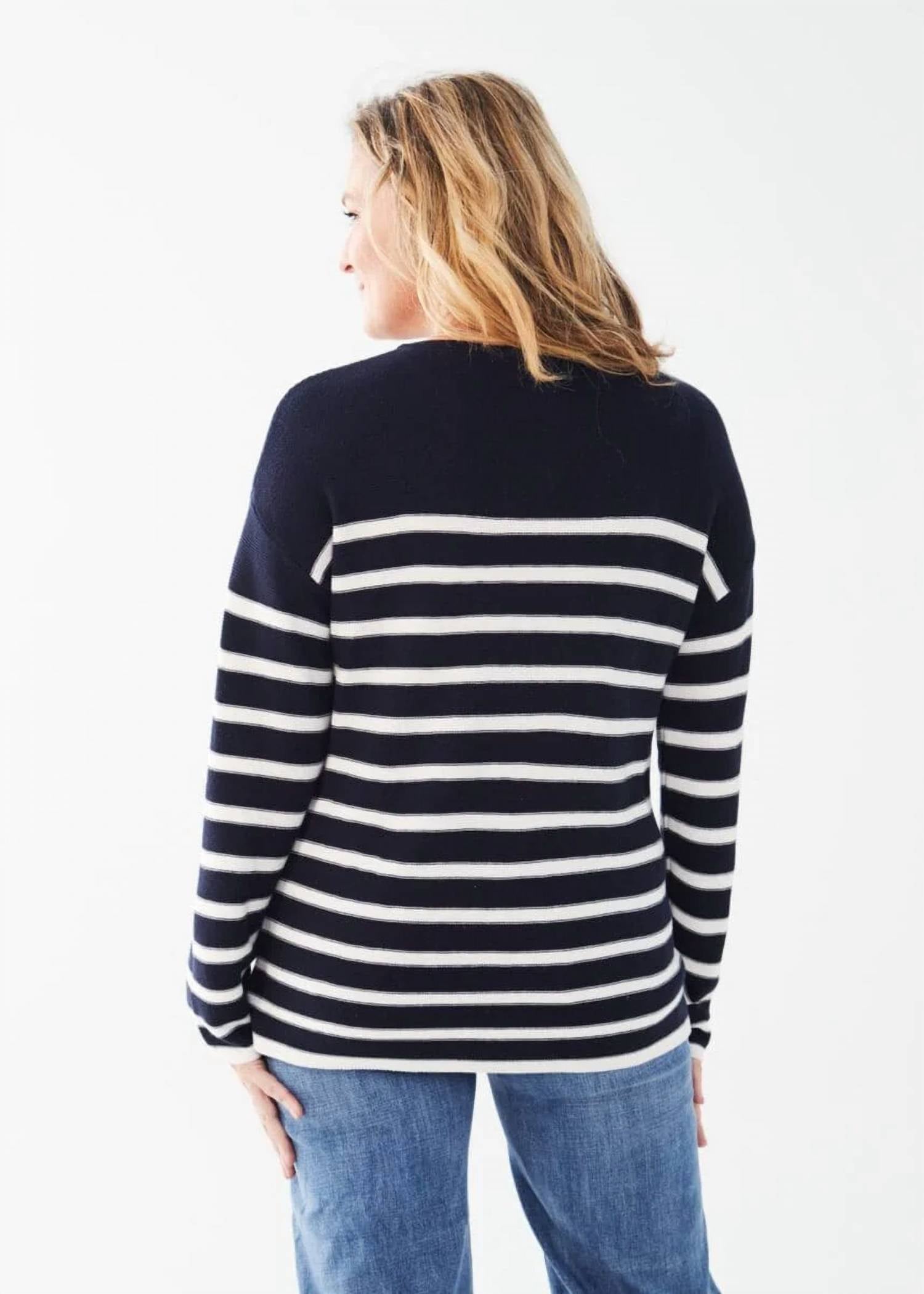 Классический стиль. Длинные рукава и классический узор в темно-синюю полоску. Длина изделия - 24 дюйма. Застежка - на застежке. Уход за изделием простой: рекомендуется машинная стирка.