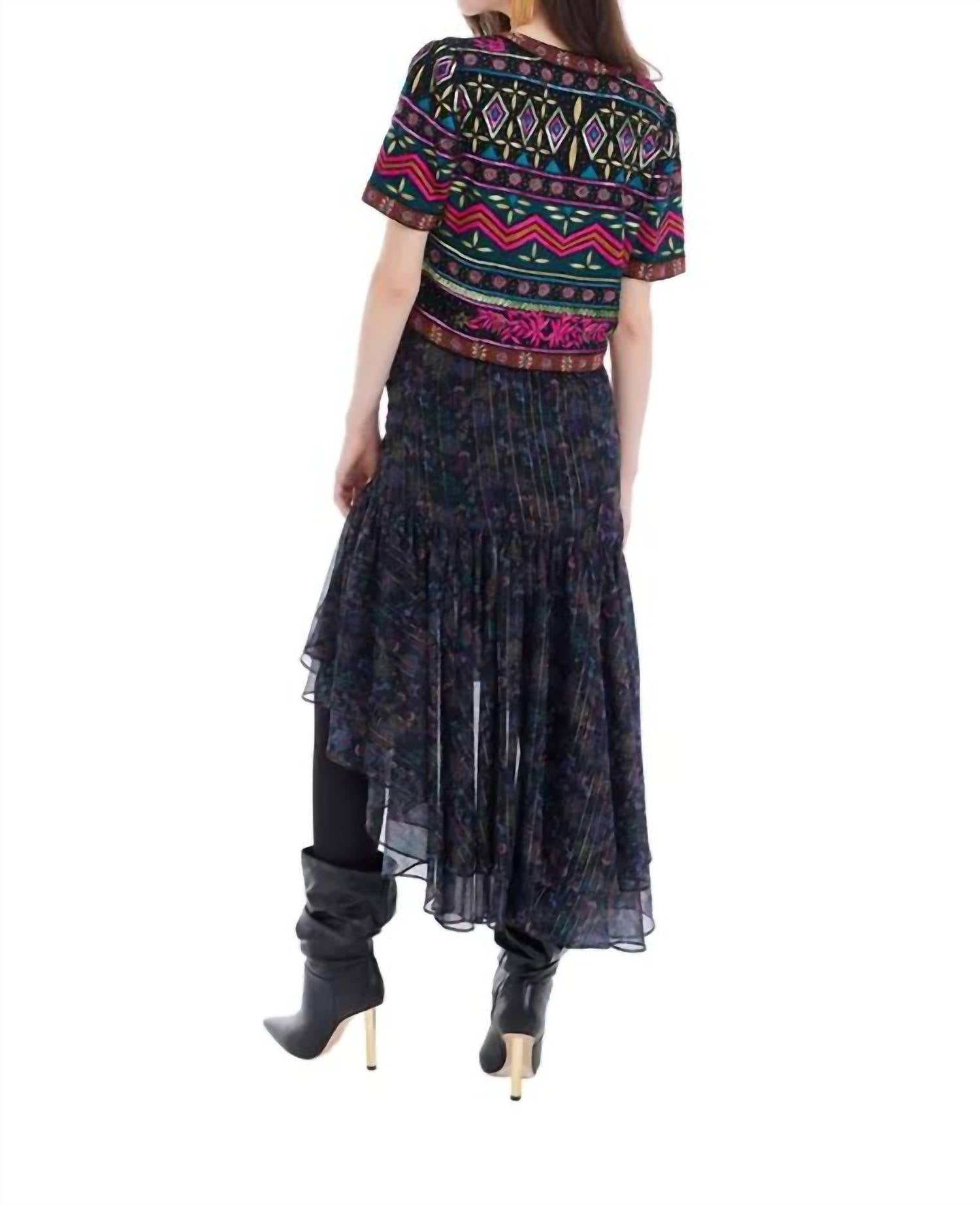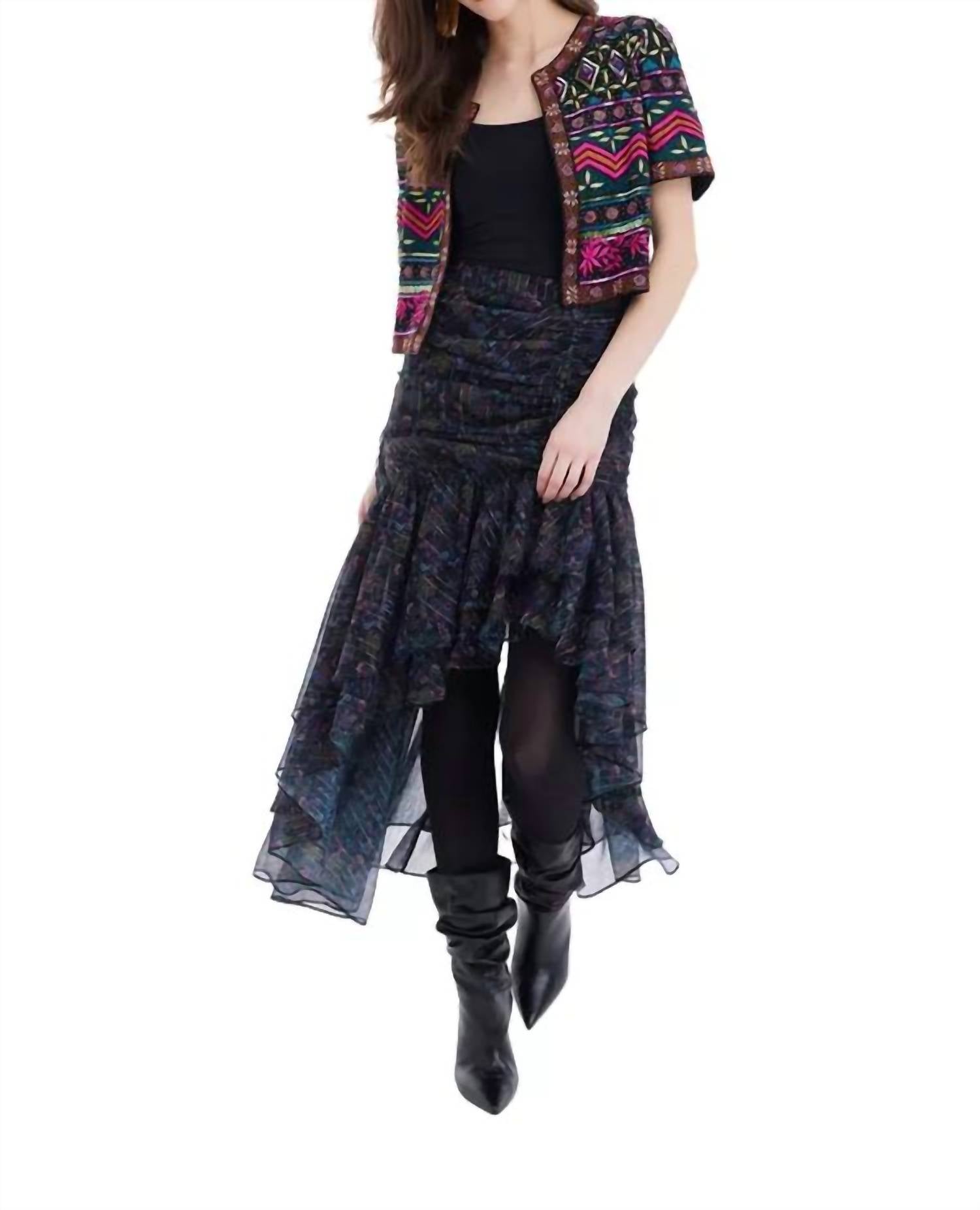 Эта черная повседневная куртка украшена замысловатым геометрическим узором, выполненным бесконечными рядами бисера и вышивки. Короткий рукав, свободный крой и круглый вырез горловины делают ее одновременно стильной и эффектной. Уход: сухая чистка. Основная часть: 100% полиэстер. Подкладка: 100% полиэстер.