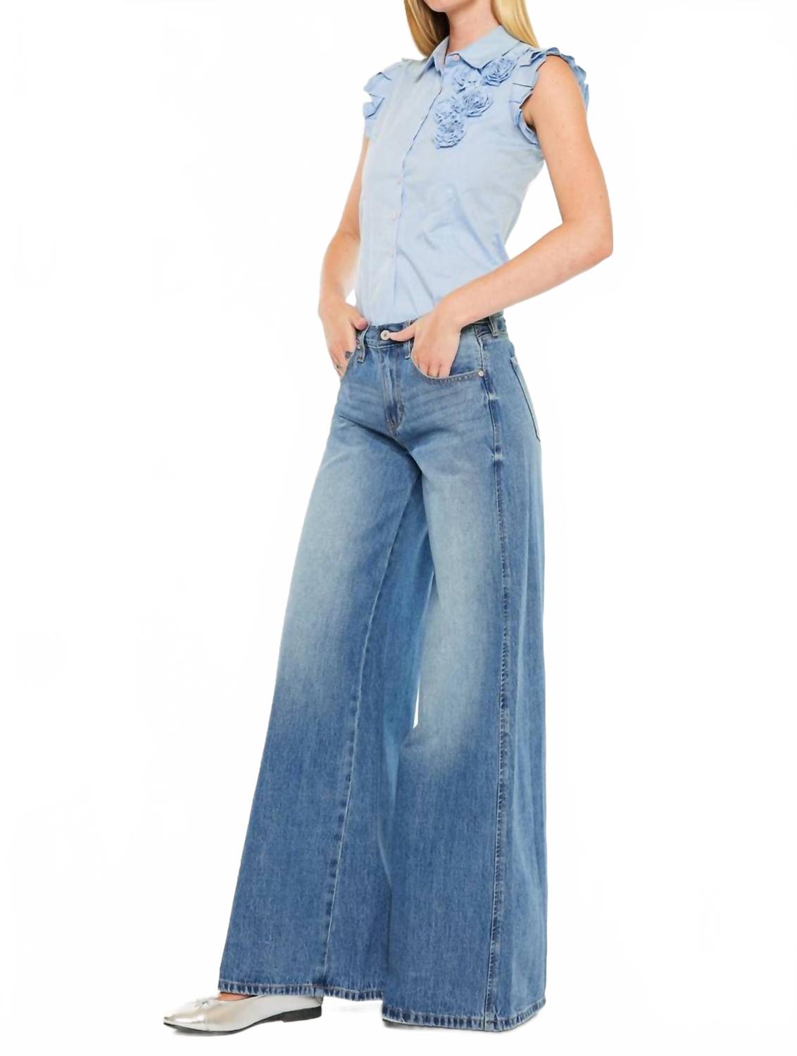 Продемонстрируйте свою дерзкую сторону в этих супершироких джинсах со средней посадкой, которые идеально подойдут для создания яркого образа в любой ситуации. Благодаря легкой потертости, классическому пятикарманному крою, застежке на одну пуговицу и молнии, эти джинсы сочетают в себе дерзкий стиль и повседневный комфорт.