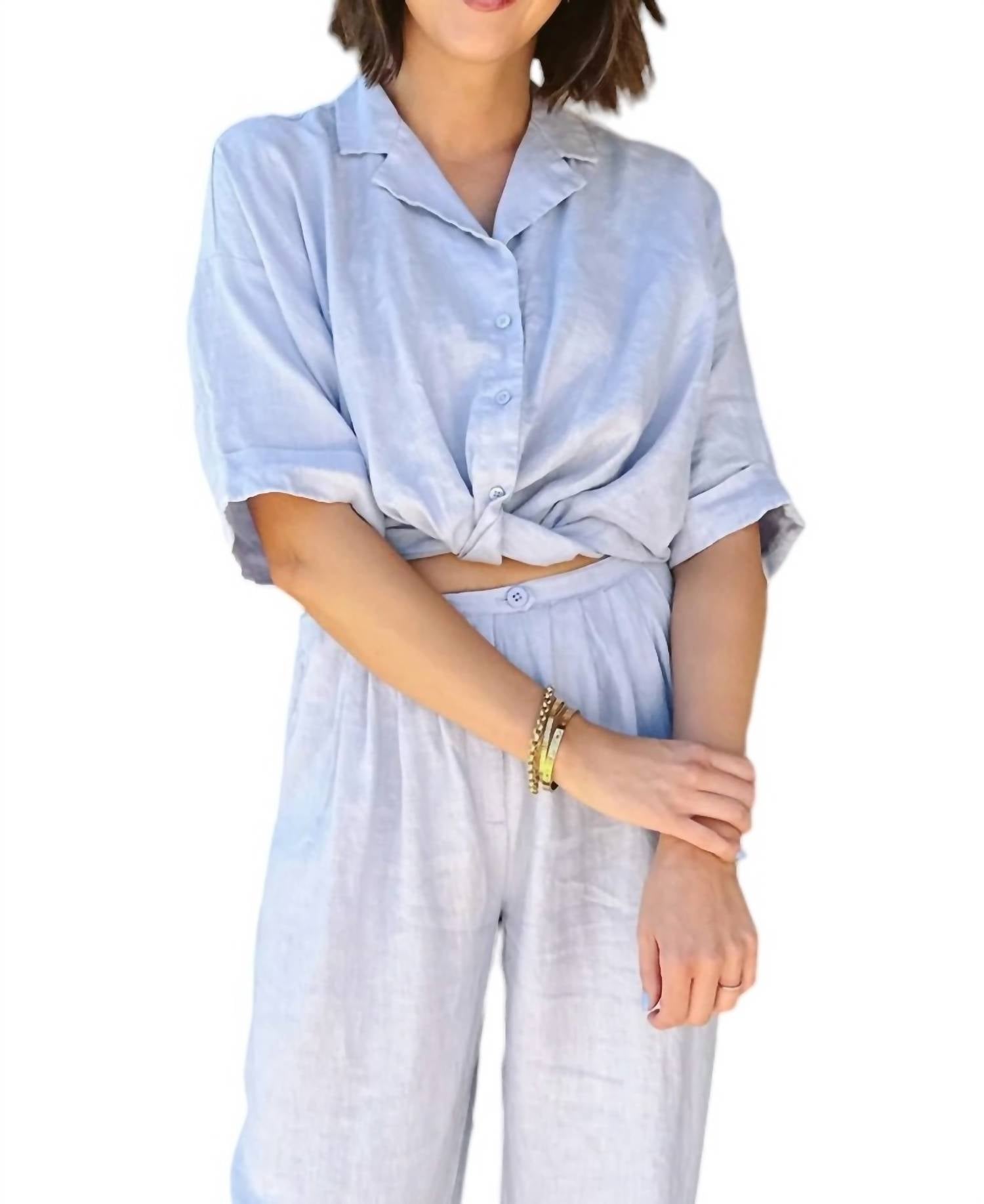 Эта рубашка с заворотом спереди, короткими закатанными рукавами и отложным воротником создает стильный и непринужденный образ. Свободный крой и эластичный пояс на талии создают укороченный силуэт. Изготовлена из 100% льна, дышащая и легкая. Уход: машинная стирка в холодной воде. Длина рубашки для размера X-Small составляет 15 дюймов (35 см).