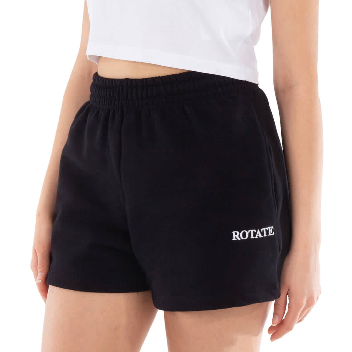 Женские шорты Rotate. Категория: Шорты. Цвет: черный. Женские шорты Rotate Black High Waist. Эти спортивные шорты из органического хлопка имеют трикотажную текстуру, эластичный пояс с внутренней завязкой на шнурке и два боковых кармана. Шорты дополнены вышитым логотипом спереди и мягкой подкладкой из французского трикотажа. Состав: 100% органический хлопок.