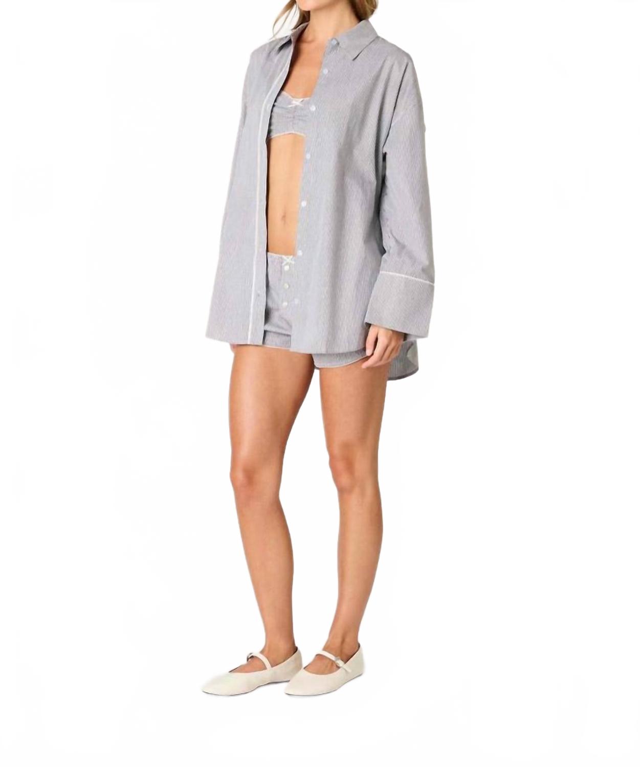 Идеально сшитая и мягкая на ощупь. Встречайте рубашку Bea Button-up от NIA - незаменимый предмет вашего летнего гардероба. Эта дышащая модель из 100% хлопка имеет длинные рукава с манжетами на пуговицах и классический воротник. Свободный свободный крой. Черно-белая полоска добавляет минималистичный штрих и легко сочетается с любым нарядом. Застежка: пуговицы. Уход: машинная стирка.