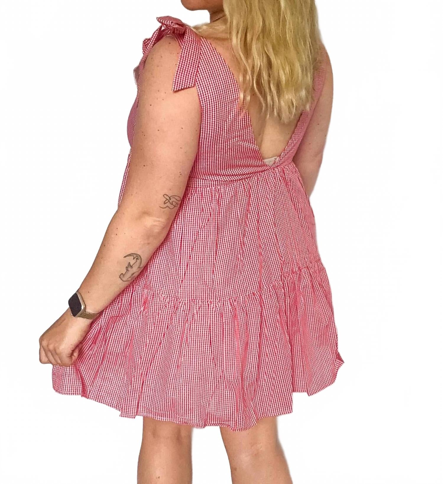 Идеальное мини-платье для теплых месяцев. Встретьте лето с платьем в клетку «Cherry On Top» с завязками на бретельках от LE LIS - ярким дополнением к вашему гардеробу. Платье изготовлено из 100% хлопка. Это мини-платье без рукавов с игривыми завязывающимися бретельками и многоярусным кроем идеально подходит для солнечных дней. Яркий вишнево-красный узор в клетку «Вишневая в ...