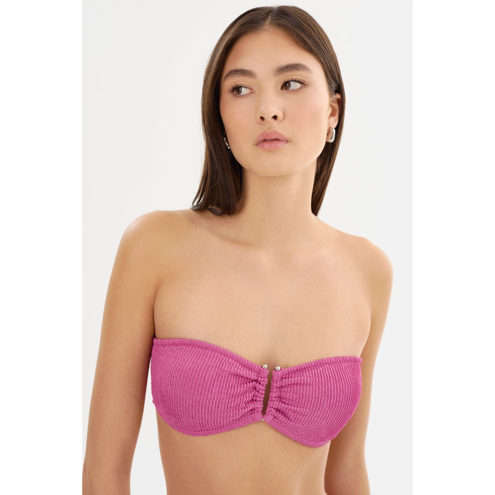 Бикини-топ-бандо ANALISA идеально дополняет вашу естественную фигуру благодаря формованным поролоновым чашечкам и изящной сборке по центру спереди, создавая одновременно привлекательный и стильный силуэт. Благодаря подкладке вы будете чувствовать себя уверенно в любом образе, зная, что вы в отличной форме и чувствуете себя стильно, отдыхая у бассейна или прогуливаясь по берегу.