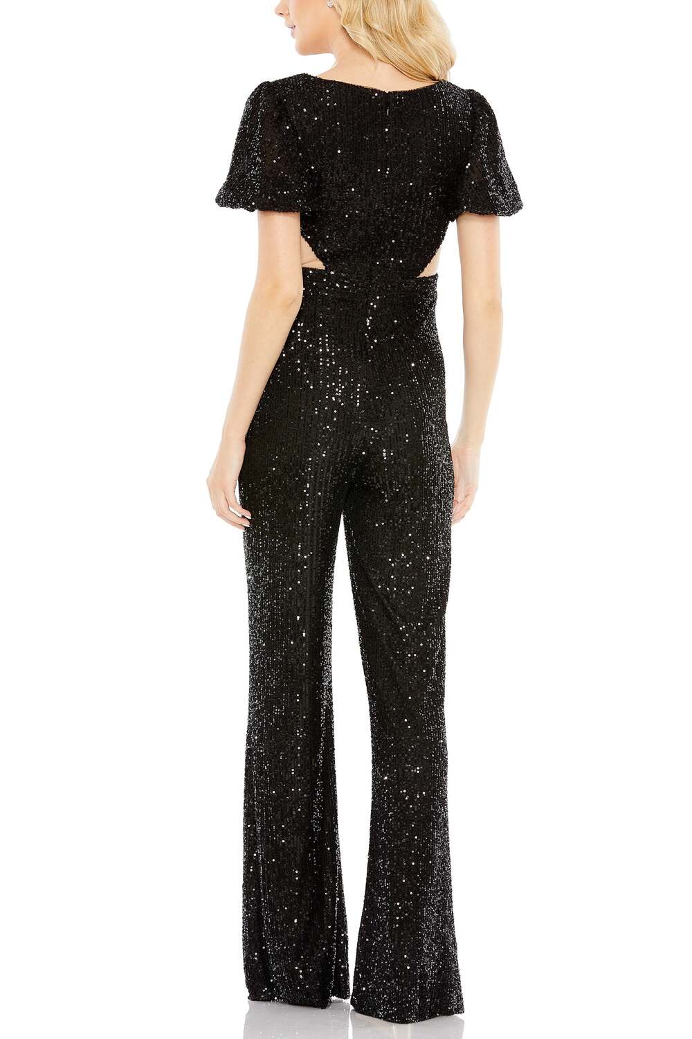 Sequined Puff Shoulder Illusion Cut Out Jumpsuit Mac Duggal, черный 45 574₽