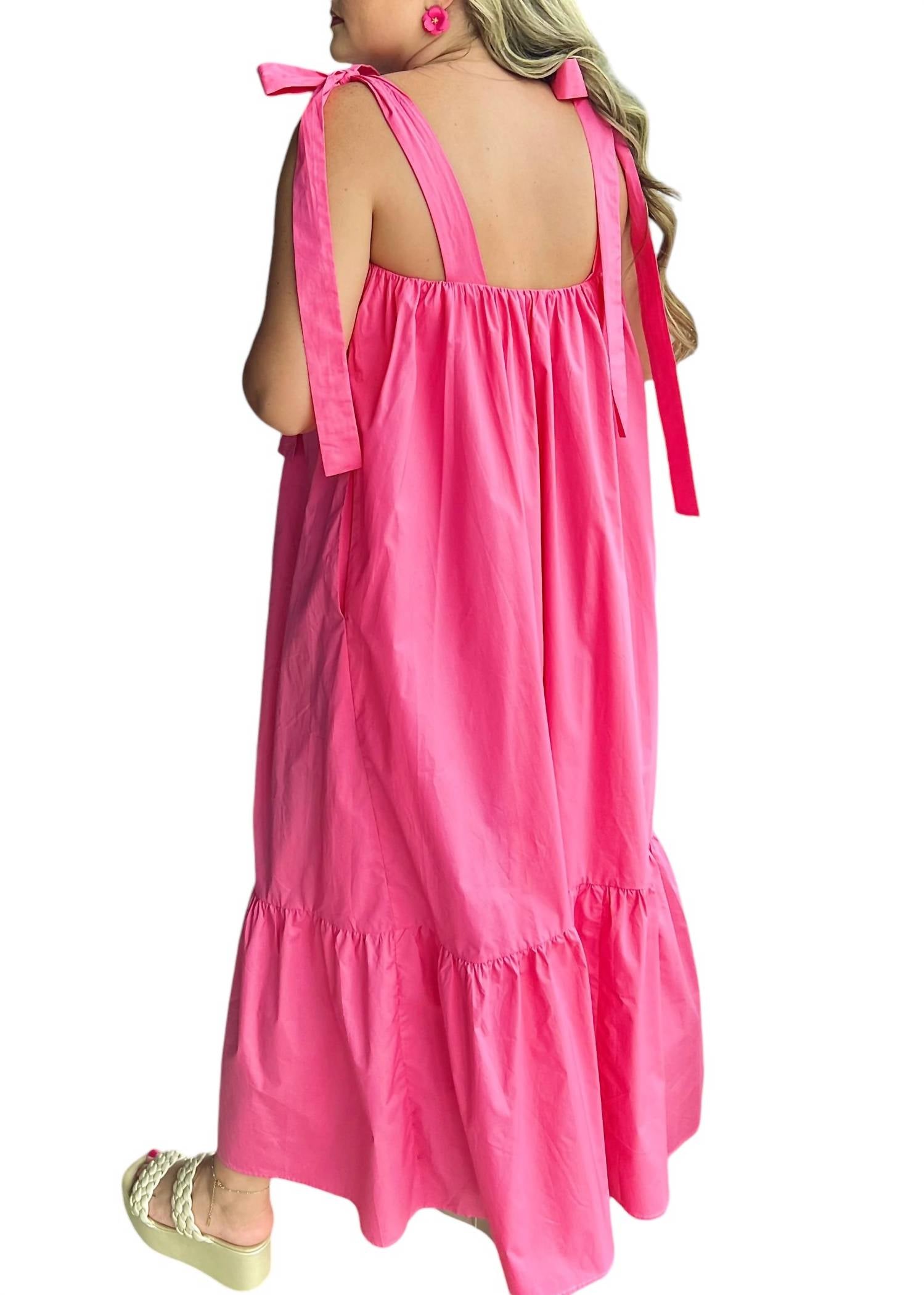 Это платье-комбинация без рукавов с элегантным квадратным вырезом и практичными карманами, а завязка обеспечивает регулируемый комфорт. Это однотонное платье макси, родом из Франции, воплощает непринужденную элегантность и стиль. Идеально подходит для любого случая и станет неотъемлемой частью любой модной коллекции.