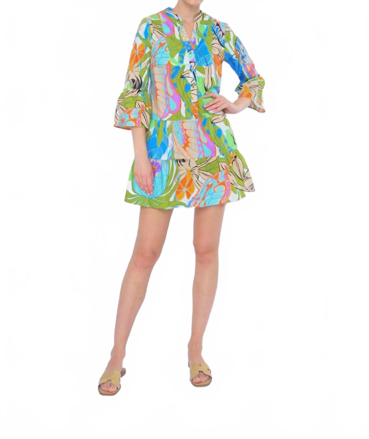 Представляем платье Clarisse от Flora Bea - стильное мини-платье, идеально подходящее для любого случая. Это платье цвета слоновой кости Farm Valley имеет А-силуэт, рукава три четверти и элегантный V-образный вырез. Застежка на пуговицы добавляет нотку изысканности, а узорчатая ткань - неповторимый шарм. С этим вневременным изделием вы без труда воплотите в себе элегантность.
