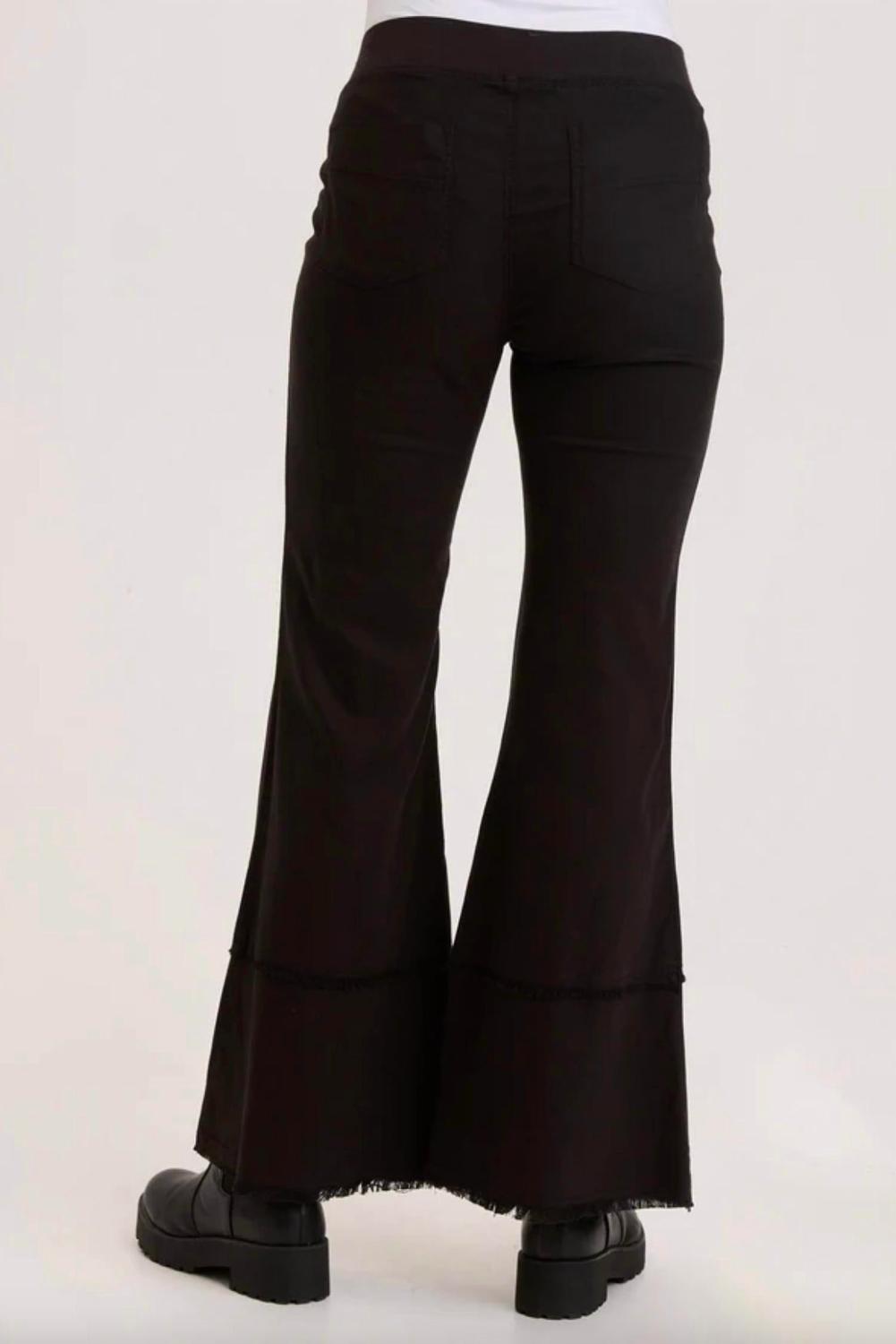 В отчете о тенденциях говорится, что буткат сейчас в моде, и именно поэтому мы любим этот фасон. Они идеально сидят, подходят любому типу фигуры и удобны. Они будут вашим фаворитом в любой сезон. Альтернатива дениму. Эти брюки из эластичного твила с эластичным поясом на застежке, двумя задними карманами в джинсовом стиле, расклешенным силуэтом и двойным необработанным краем.