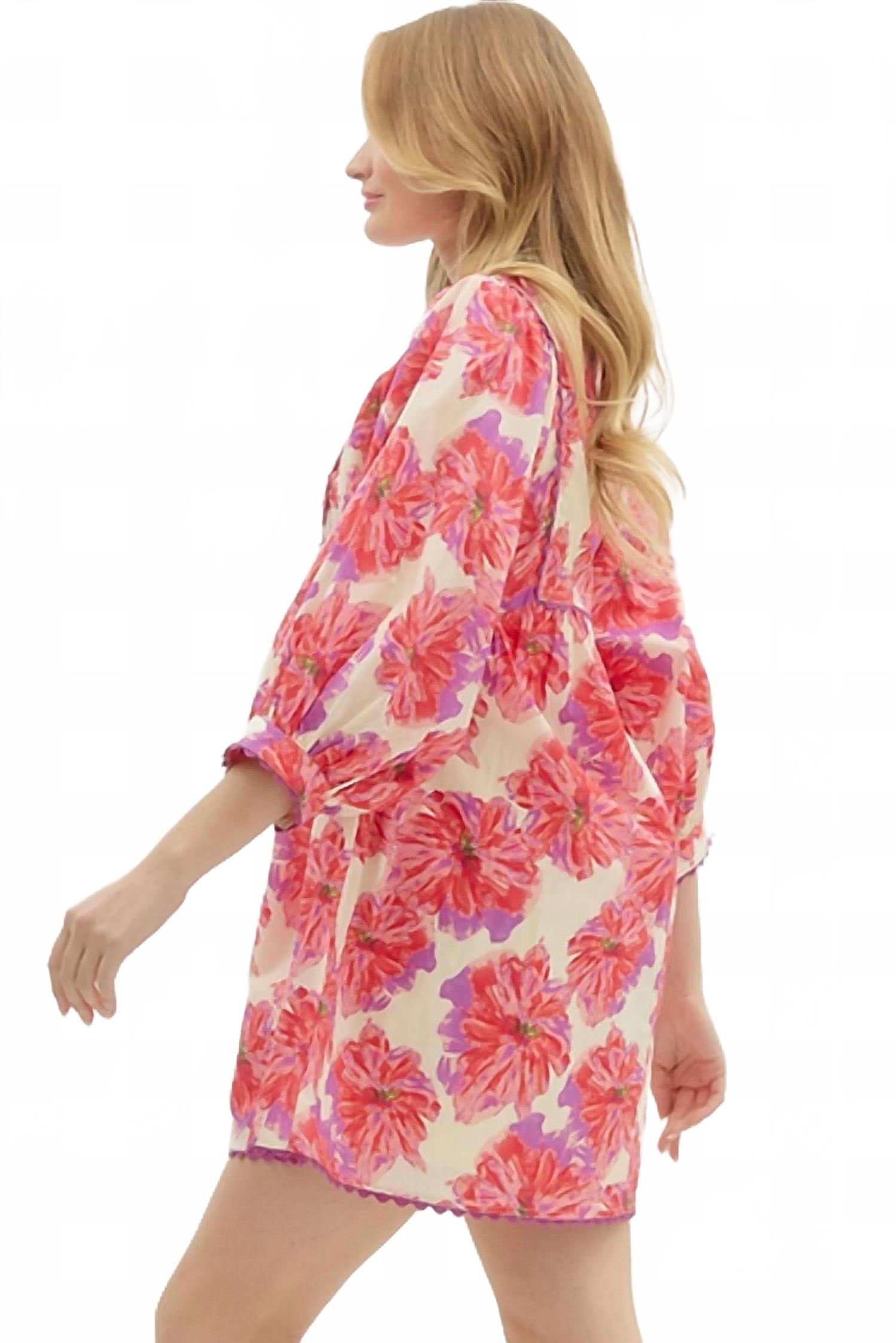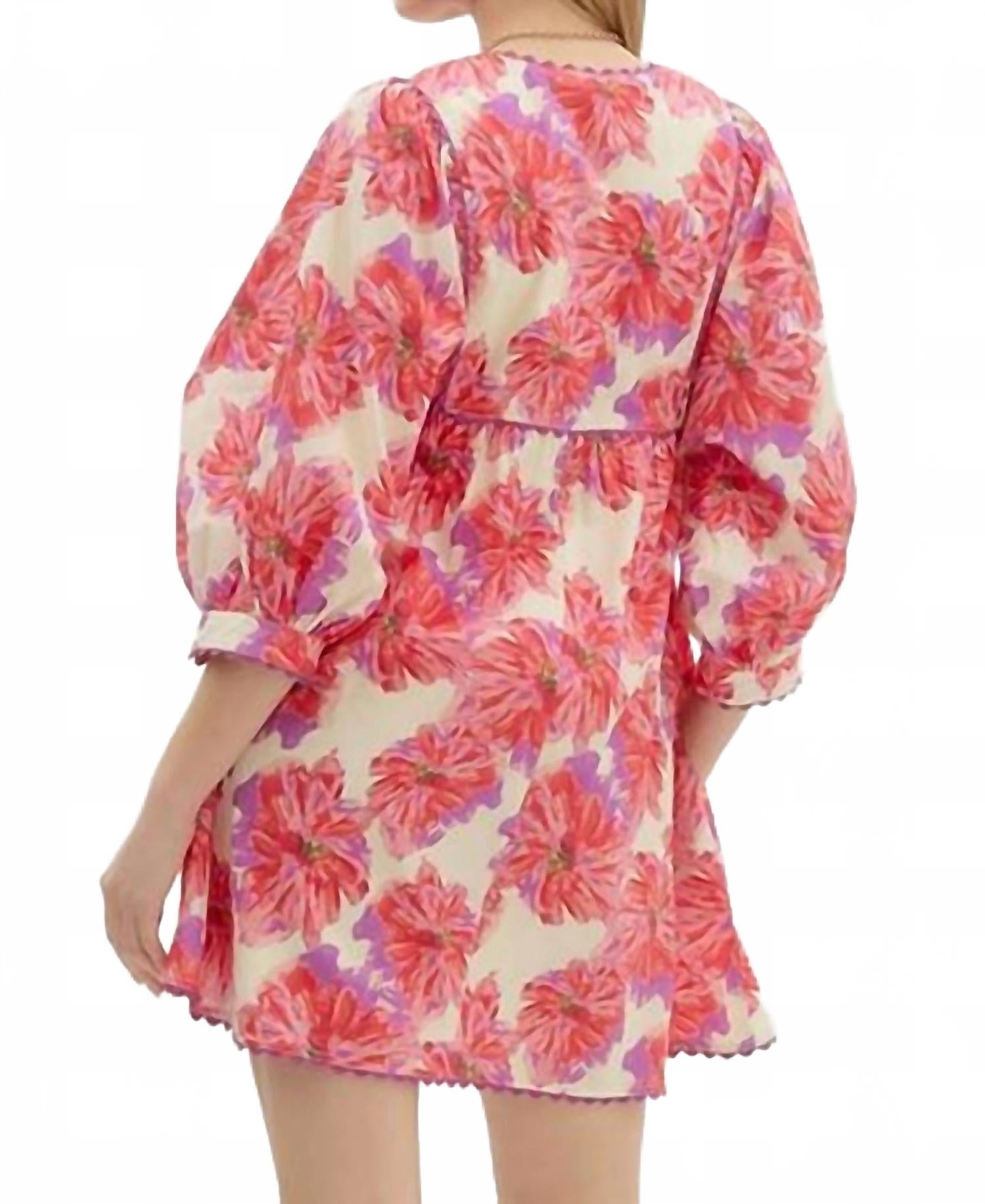 Ощутите нотку элегантности в ярком красном цвете. Платье в стиле бохо-шик с рукавами-буфами три четверти и V-образным вырезом, подчеркивающим фигуру, создает изысканный, но в то же время модный образ. Изготовлено из 100% хлопка. Практичный дизайн в виде пуловера идеально подходит для весенних случаев. Только ручная стирка.