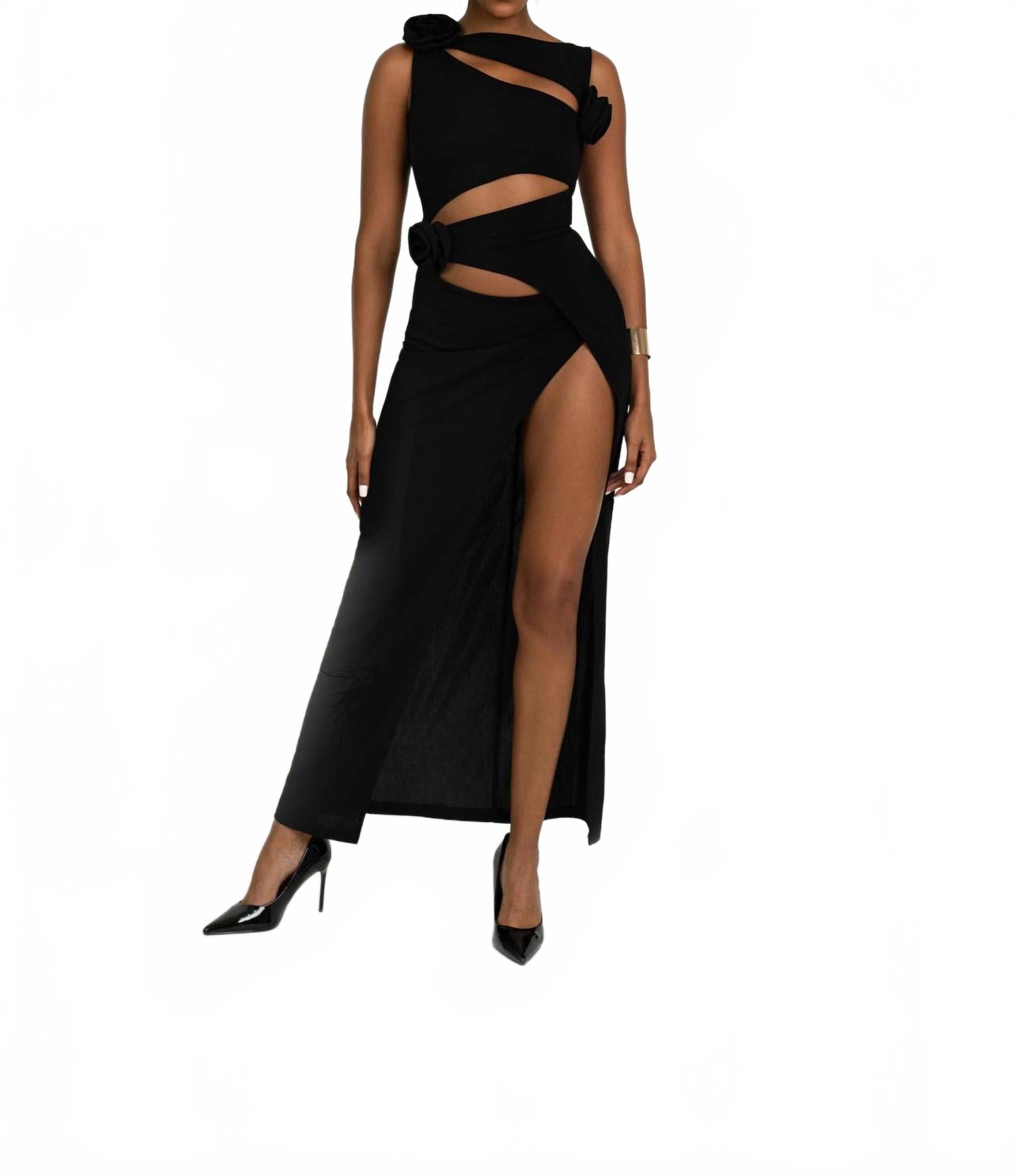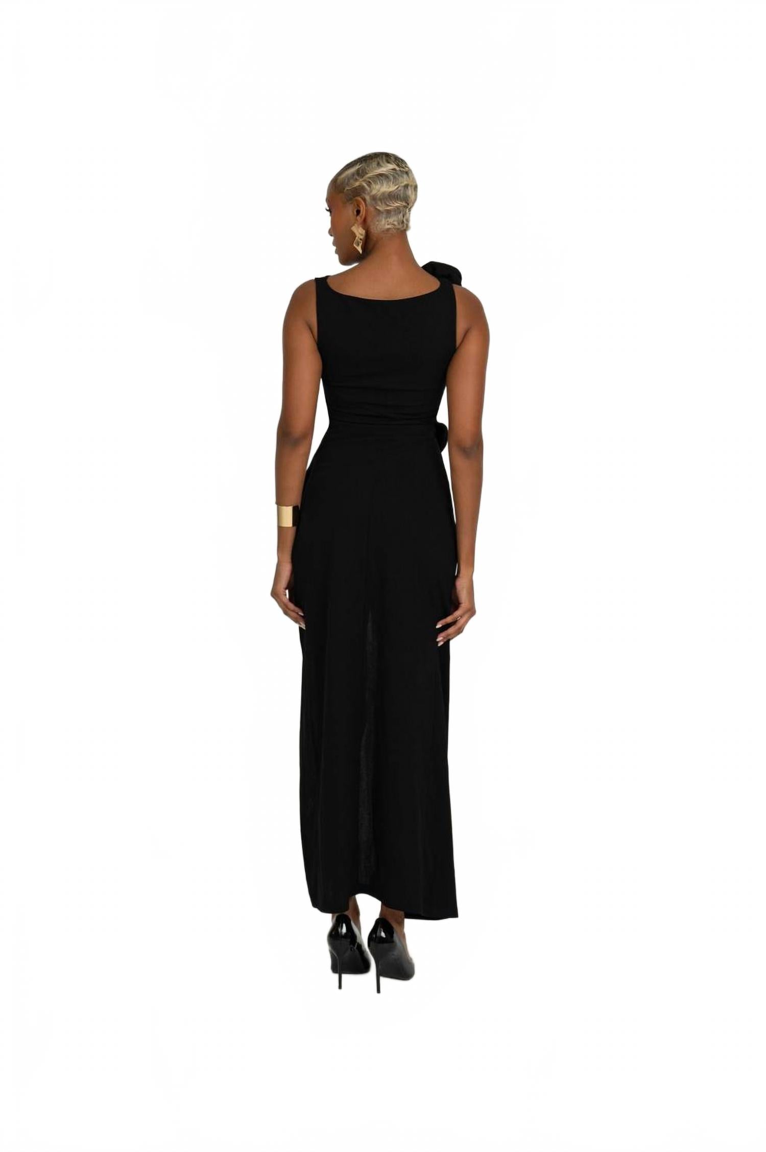 Платье макси Mila от Ciao by CC - воплощение тихой роскоши, идеально подходящее для летнего ужина. Это облегающее платье без рукавов элегантного черного цвета украшено художественной цветочной отделкой, создающей интригующие диагональные вырезы, создающие шикарный образ. Круглый вырез и стильный разрез по низу придают ему изысканность с каждым шагом. Застежка - надевайте.