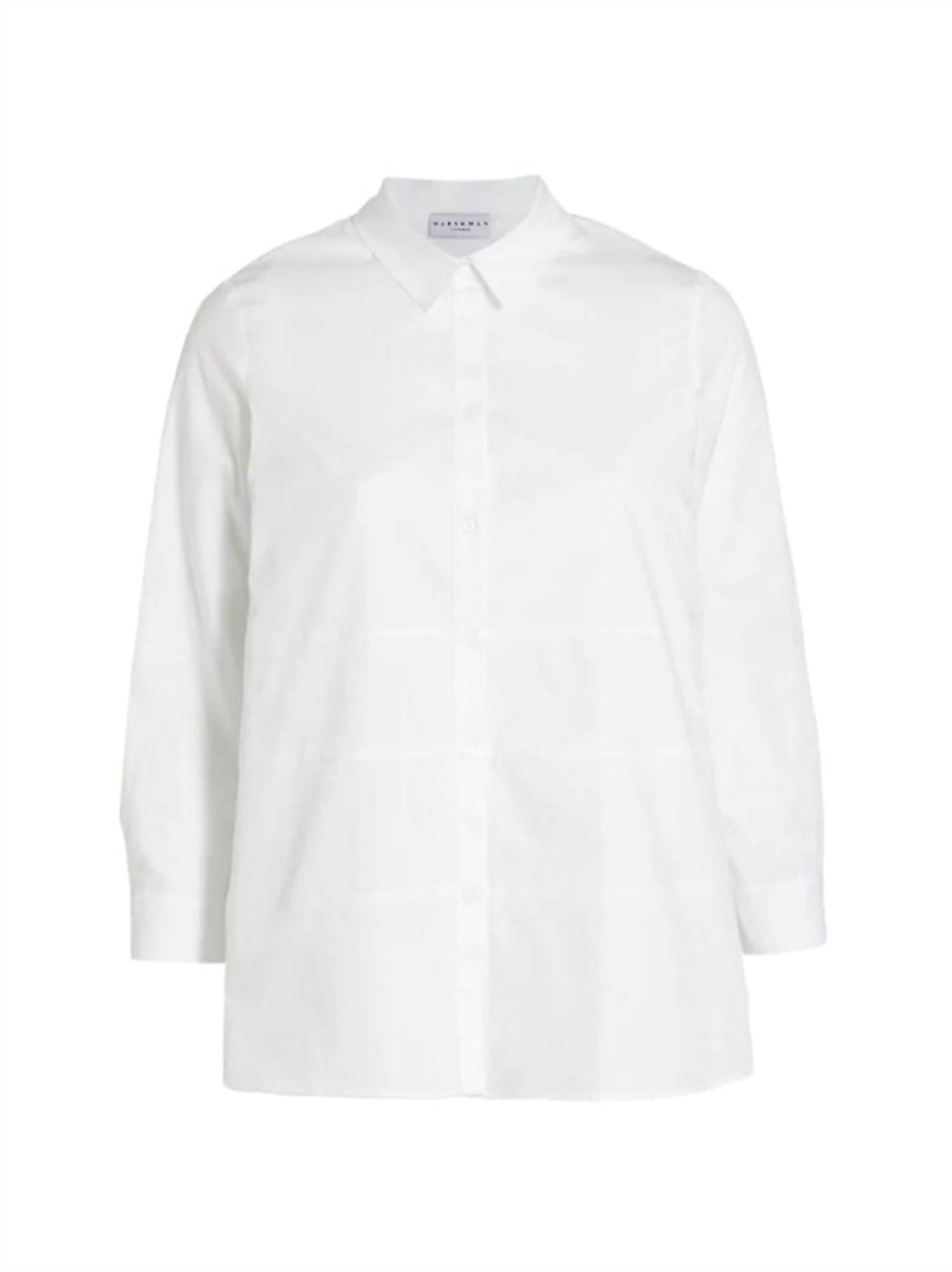 Классическая рубашка на пуговицах, которая никогда не выйдет из моды. Представляем рубашку Freya Button Down от HARSHMAN - классическое белое дополнение к любому гардеробу. Эта женская рубашка с длинными рукавами и строгим воротником выглядит элегантно и изысканно. Изготовленная из 100% хлопка в США, она обеспечивает комфорт и качество в любой носке. Застежка: пуговицы.