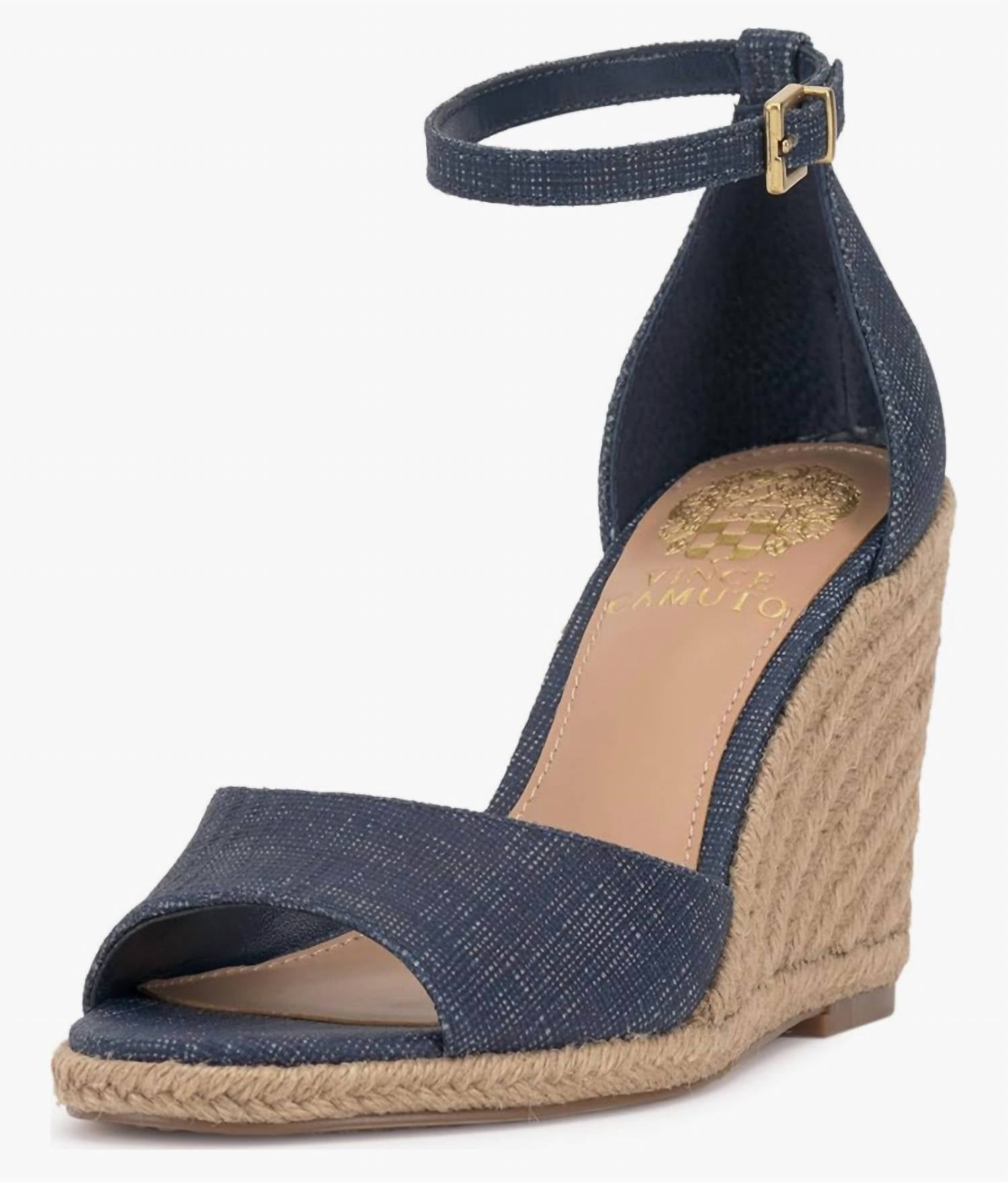 Вечные босоножки на танкетке, которые будут актуальны из сезона в сезон. Эти кожаные босоножки от Vince Camuto имеют каблук-танкетку высотой 3,55 дюйма, обтянутый джутом, подошву высотой 0,39 дюйма и ремешок на щиколотке. Они имеют закрытый каблук, кожаный верх, искусственную подкладку и подошву. Модель называется Felyn, и они соответствуют размеру. Босоножки импортные.