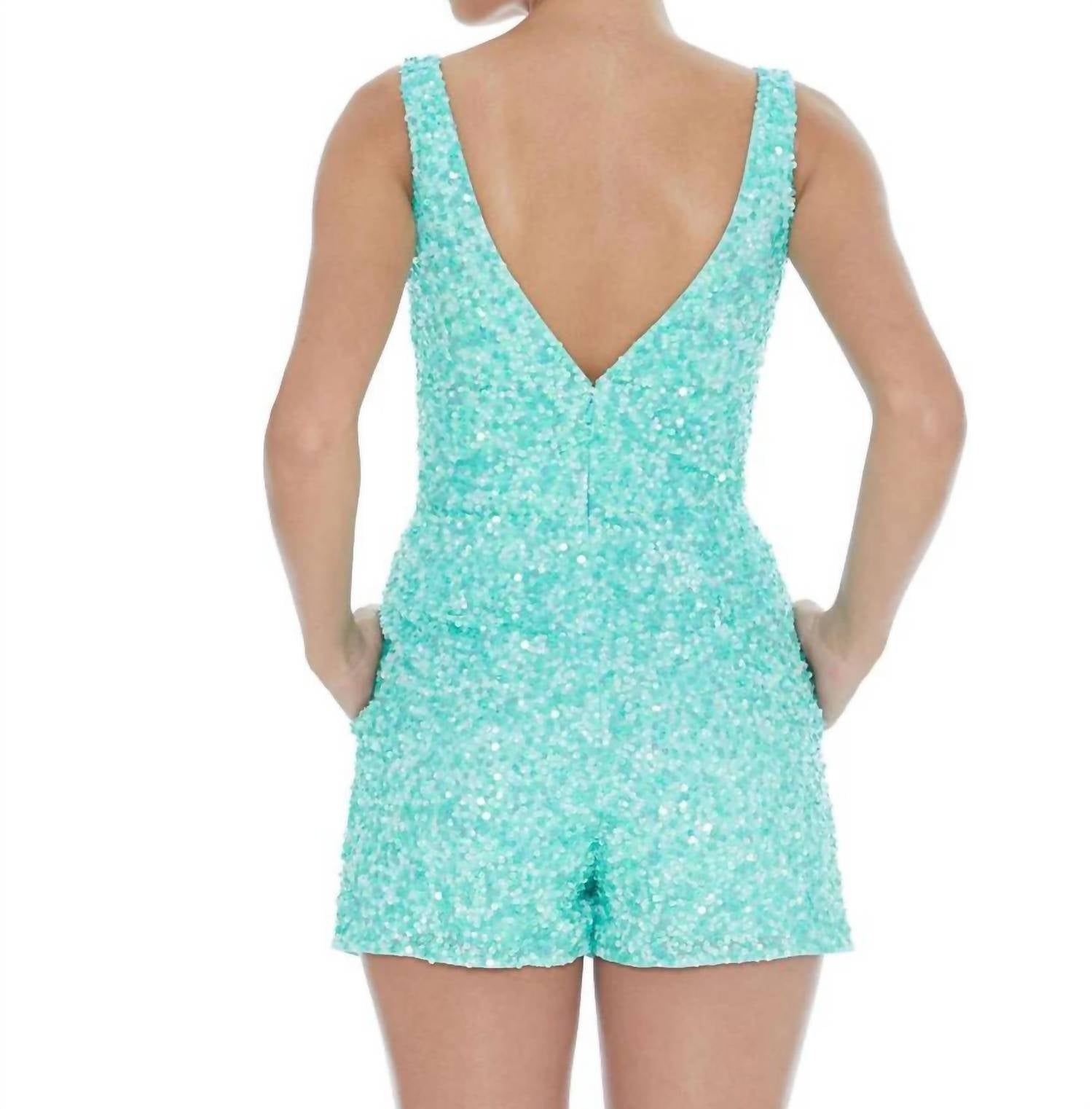 Блестящий и сверкающий комбинезон цвета морской волны с пайетками от ASHLEYlauren - воплощение ослепительной элегантности. Этот комбинезон с текстурированным дизайном, полностью расшитым бисером, с привлекательным V-образным вырезом и удобными карманами идеально подходит для создания яркого образа на любом мероприятии. Застежка: молния сзади.