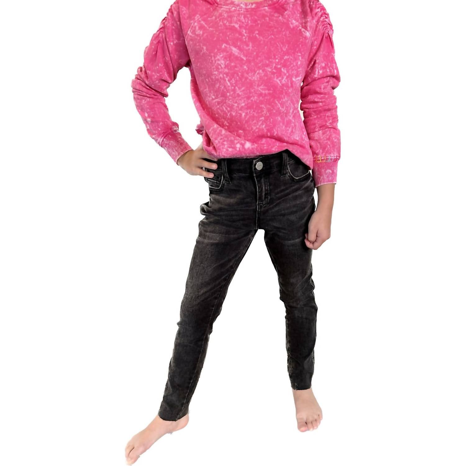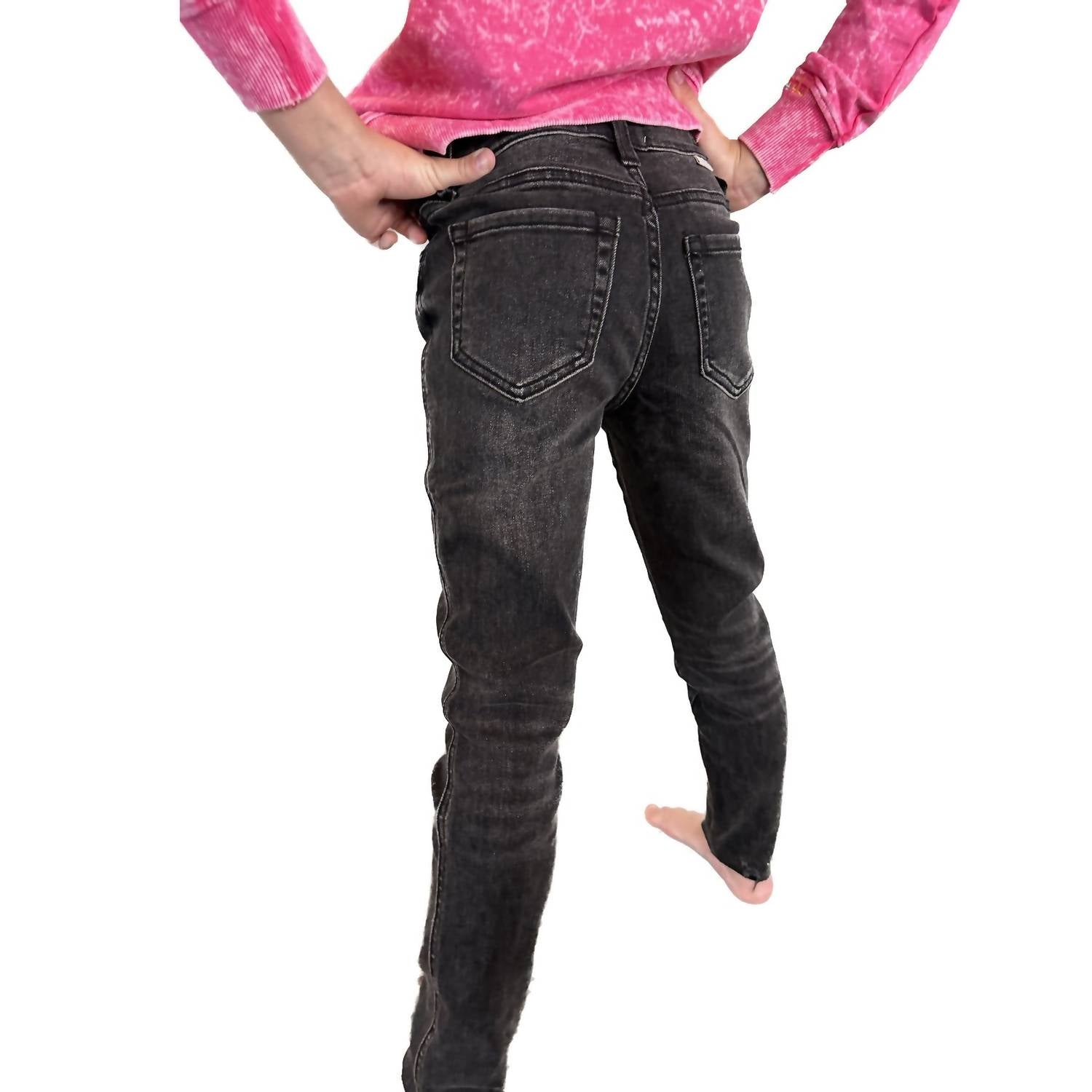 Эти джинсы классического черного цвета отличаются суперэластичным кроем и небольшими потертостями на необработанном подгибе. Состав: 68% хлопка, 27% полиэстера, 3% вискозы и 2% спандекса, что обеспечивает комфортную посадку. Ширинка на молнии и регулируемая талия обеспечивают индивидуальную посадку. За ними легко ухаживать, стирая в стиральной машине.