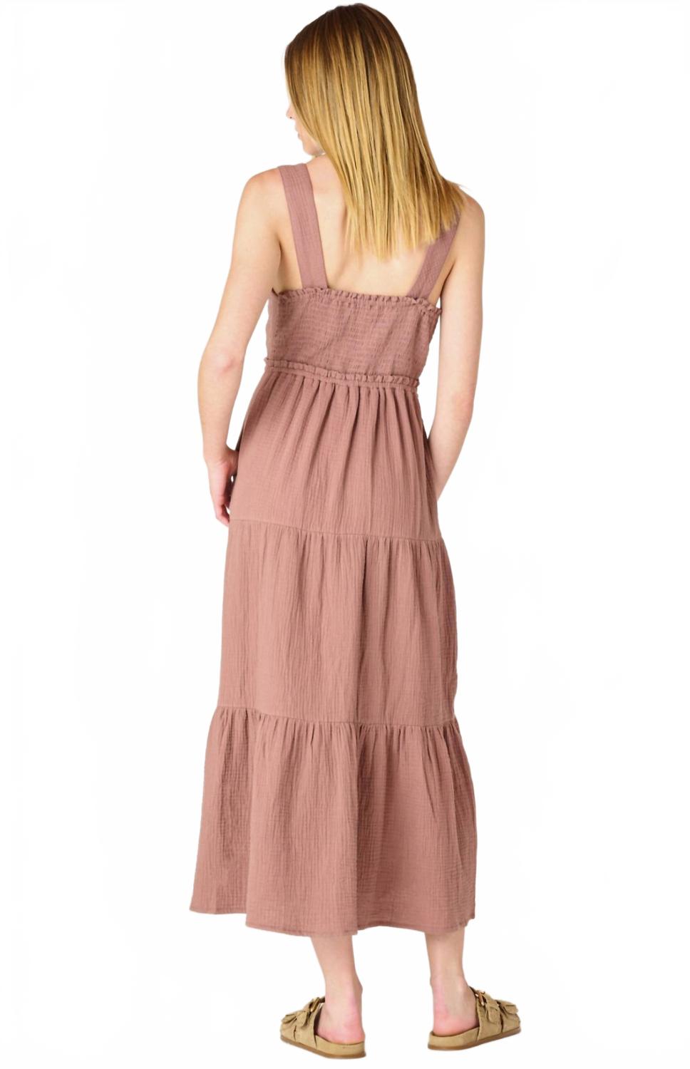 Просто добавьте шлепанцы или мюли, и все готово. Откройте для себя женское платье миди Roma от Dex - потрясающее изделие в стиле бохо-шик, идеально подходящее для летнего отдыха. Это фактурное многоярусное платье миди без рукавов в розово-серо-коричневом цвете имеет А-силуэт с привлекательным V-образным вырезом. Состав: 100% хлопок. Застежка: на застежку.