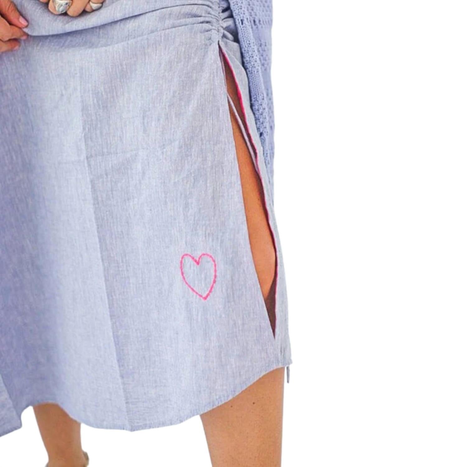 Носите это макси-платье с вашим любимым эффектным ожерельем и сандалиями для создания идеального образа. Льняное платье Kerri Rosenthal Sabine. Платье макси из льна синего цвета. Разрезы по бокам с регулируемыми бретельками. Тонкие бретельки с регулируемыми бегунками. Вышитое сердце на левом подоле. Соответствует размеру. Машинная стирка в холодной воде.