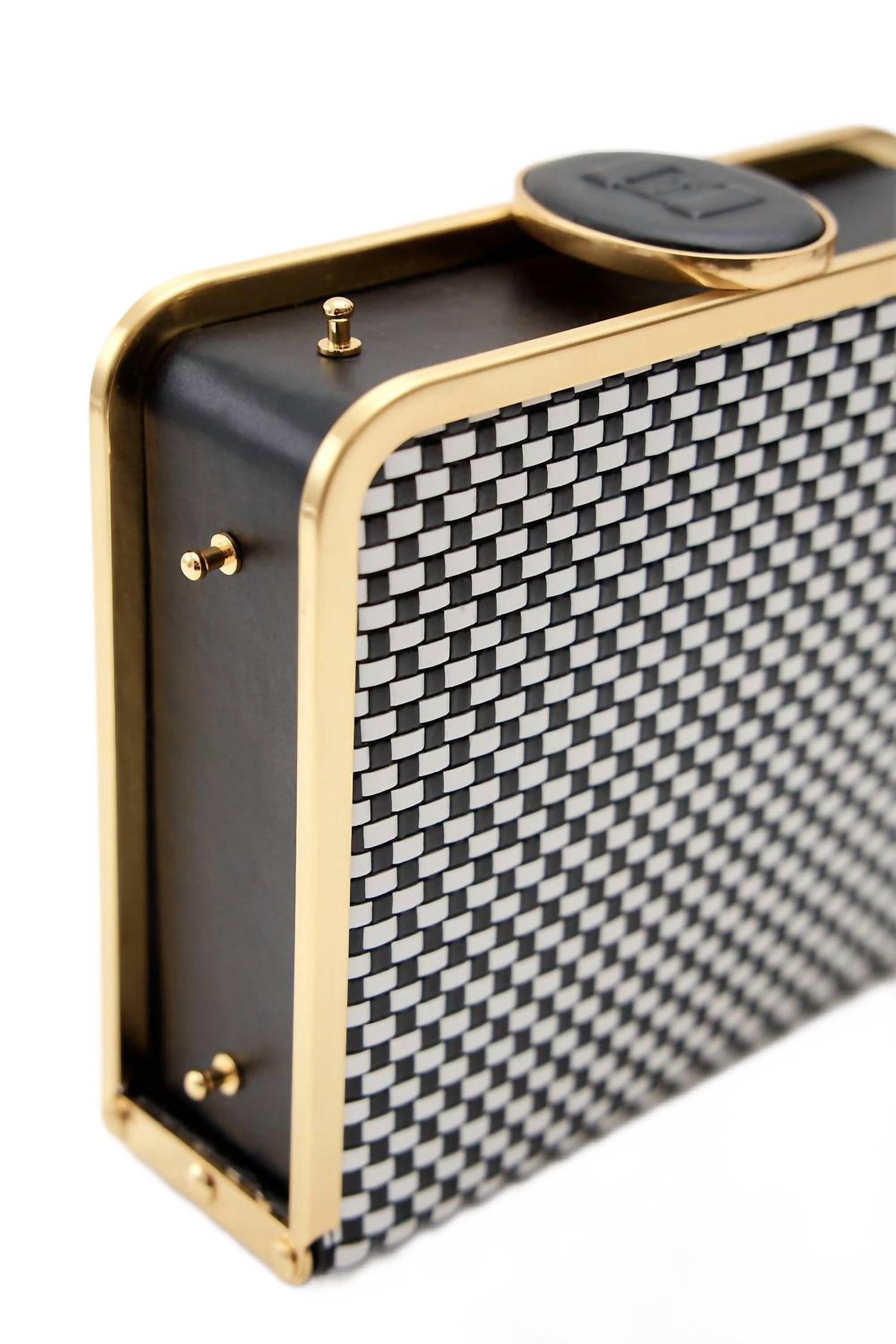Компактный, но эффектный. Сделано в Корее. Благодаря гравировке «E» на верхней застежке, чехол легко открывается и вмещает все необходимое, например, телефон, картхолдер и помаду. Если вы хотите оставить руки свободными, внутри есть дополнительный кожаный ремешок. Размеры: высота - 6,5 дюйма, ширина - 7,8 дюйма, глубина - 2,2 дюйма. Материал: 100% кожа.