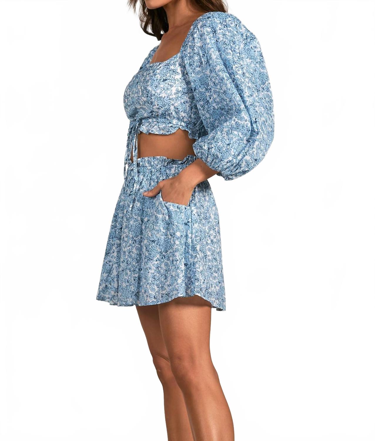 Обнажите немного тела в этом милом и непринужденном укороченном топе. Эта юбка с цветочным принтом светло-голубого и темно-синего цвета имеет боковые карманы, подкладку и эластичный пояс. Она легко надевается и отлично подходит для повседневных летних дней. Дополните ее джинсовой блузой Santa Fe Cinched Blouse от Elan, чтобы создать законченный образ.
