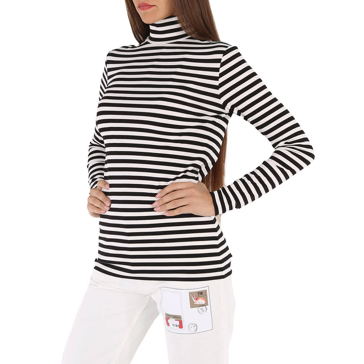 Burberry Ladies Black Striped Stretch Jersey Turtleneck Top 16 195₽