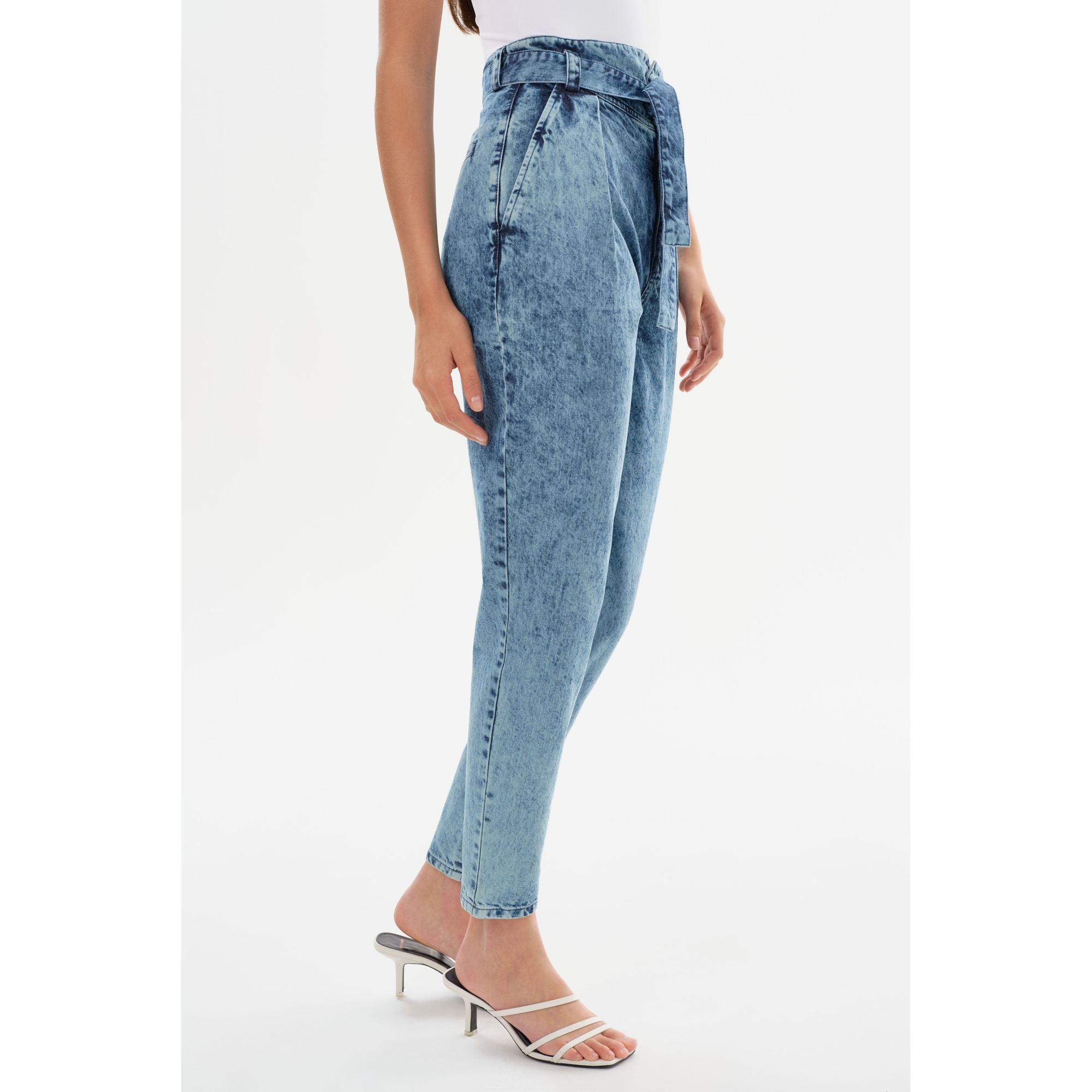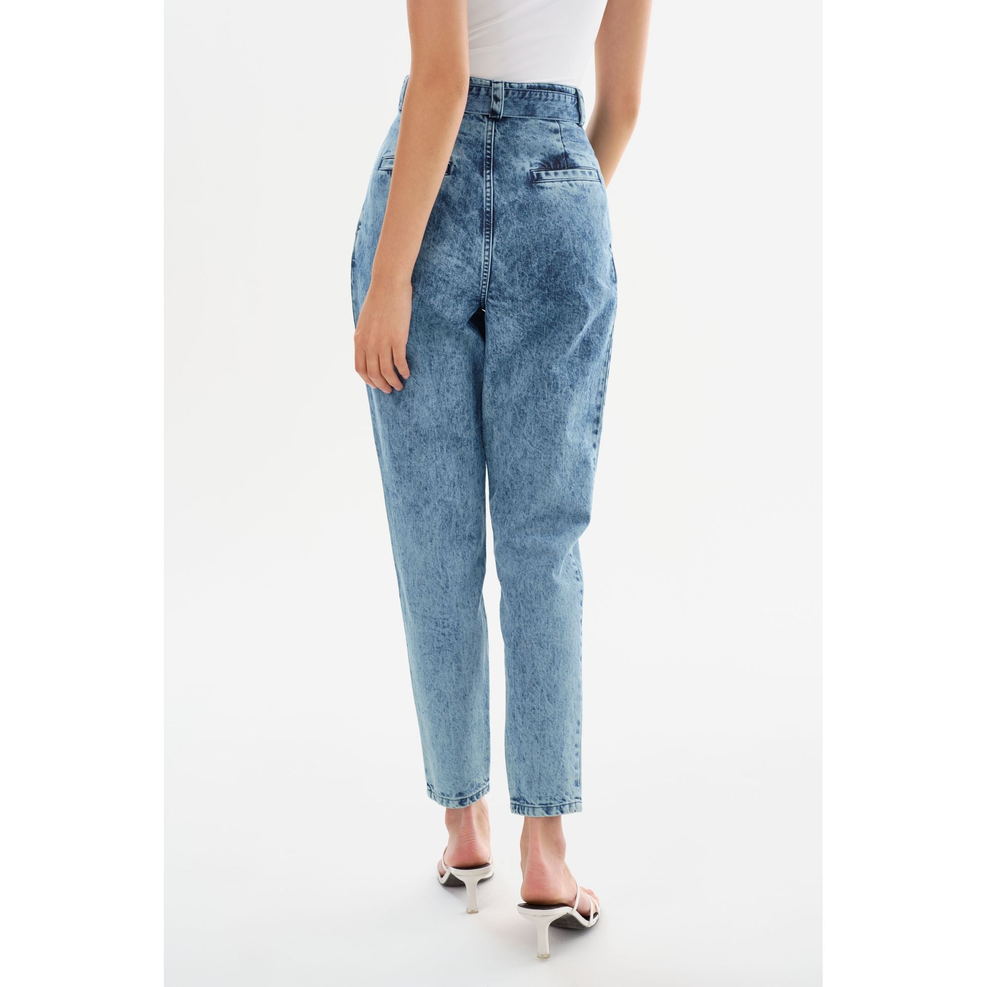 Джинсовая ткань в стиле 90-х возвращается в динамичном стиле: свободные брюки MERANA с эффектом кислотной стирки. Складки спереди, высокая талия и съемный пояс придают структуру нестройному силуэту, создавая изысканный образ, который поистине восхитителен. Сочетайте их с другими базовыми вещами, чтобы создать утонченный образ, неподвластный времени.