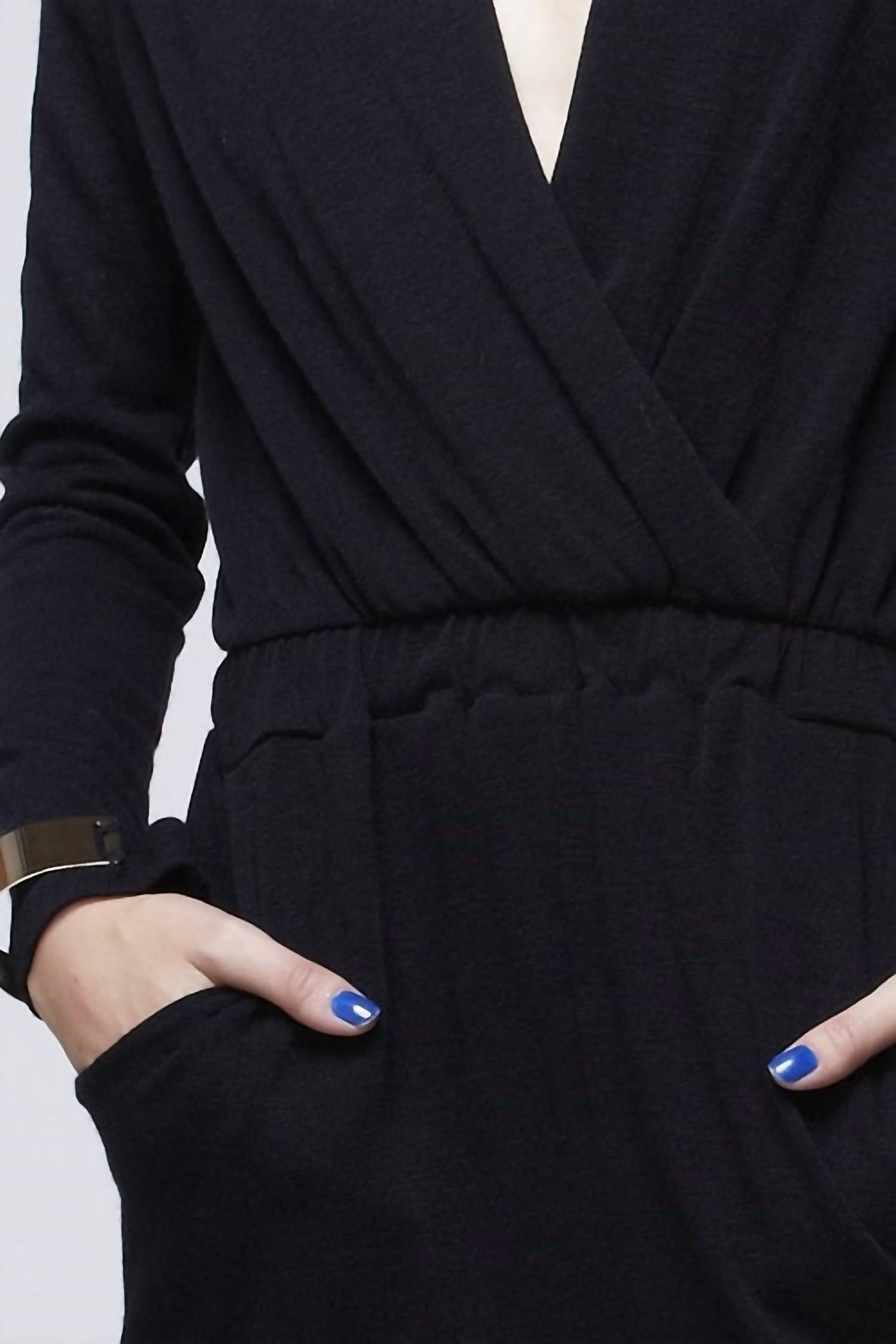 Надевайте и вперед! Подчеркните свой стиль с комбинезоном с запахом спереди от Charme - элегантным и изысканным решением, воплощающим современную элегантность. Этот черный комбинезон с длинными рукавами и лифом с запахом приталенного кроя присборен на талии, создавая изящный силуэт. Узкие брюки завершают элегантный образ. Застежка - на застежку.